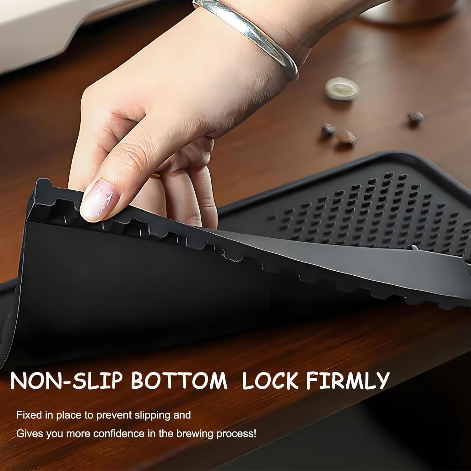 - 【Non-Slip Base】Upgraded strong grip base ensures the mat stays in place during the tamping process, creating a stable and flat tamping surface. The corner overhang design fits snugly on your desktop without sliding easily. Perfect for professional cafes and home espresso work stations