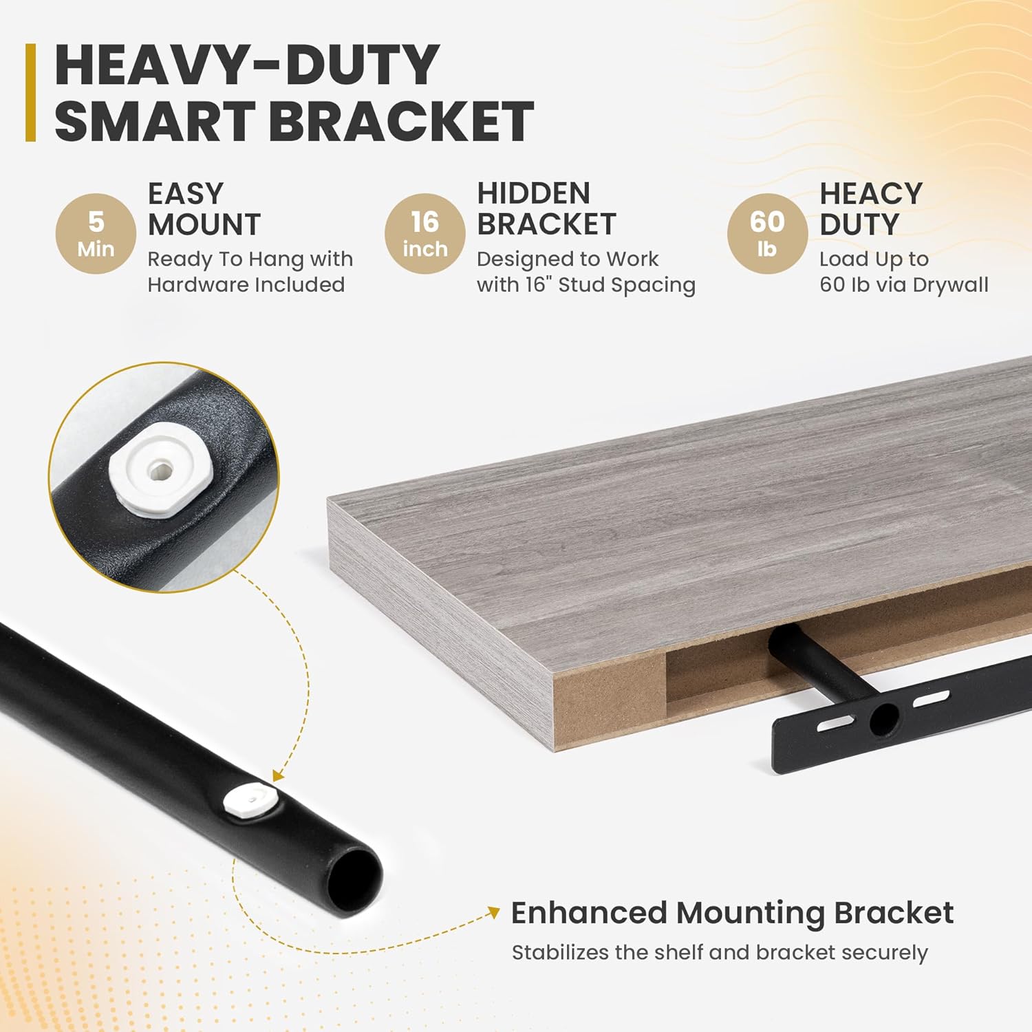 - [ROBUST & SECURE MOUNTING]: Equipped with a sturdy, hidden mounting bracket, these 72-inch floating shelves ensure solid support for your items. Designed for easy and secure installation, they come with all necessary hardware for a firm, wobble-free setup, allowing you to confidently display decor, photos, or functional items with style.