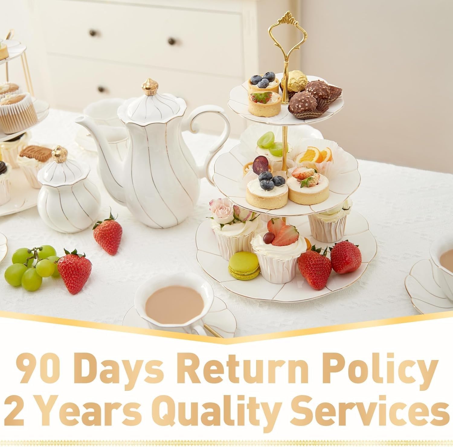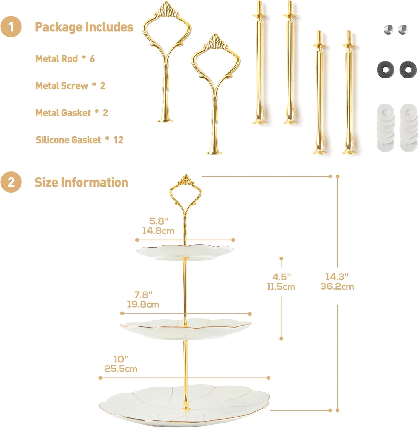 - 【Food-Grade Porcelain Tier Stand, Let You Enjoy Dessert at Ease】Crafted from high-quality porcelain clay, our tiered stand ensures a safe and lead-free dining experience. Enhanced with German Heraeus gold glaze, the exquisite design complements your daily rituals. The 3-tier structure accommodates cakes, sandwiches, and fruits, enhancing the premium aesthetic of your tableware. Enjoy delightful moments with family and friends, surrounded by this tastefully crafted piece.