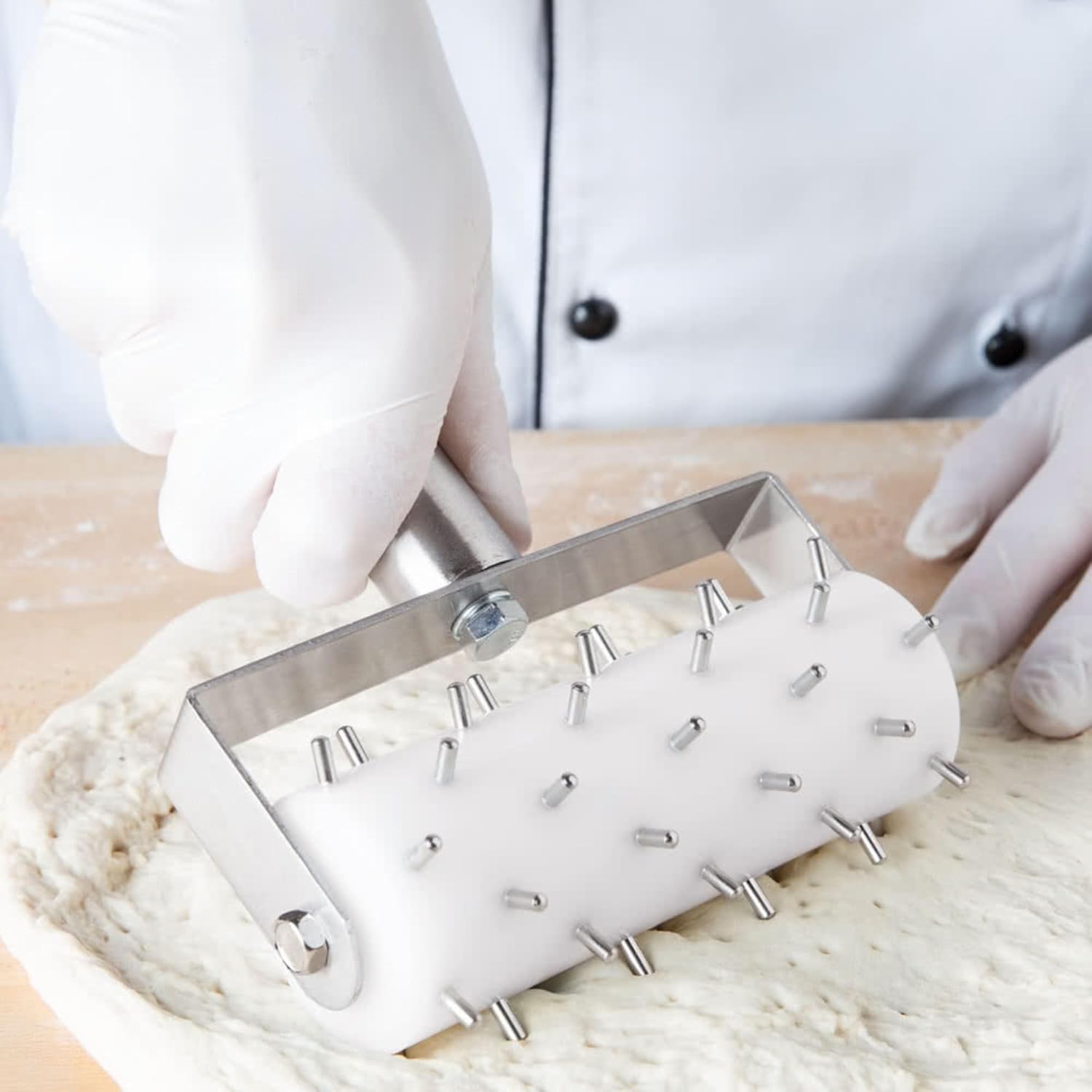 - 𝐒𝐓𝐀𝐈𝐍𝐋𝐄𝐒𝐒 𝐒𝐓𝐄𝐄𝐋 𝐏𝐈𝐍𝐒 𝐅𝐎𝐑 𝐄𝐕𝐄𝐍 𝐃𝐎𝐔𝐆𝐇 𝐇𝐎𝐋𝐄𝐒 – This pizza roller dough tool features durable stainless steel pins that pierce consistent holes through dough, preventing air bubbles and ensuring even baking. Ideal for preparing pizza crusts, pastry bases, and bread loaves, it supports professional-quality baking at home or in commercial kitchens by improving airflow and dough expansion control.