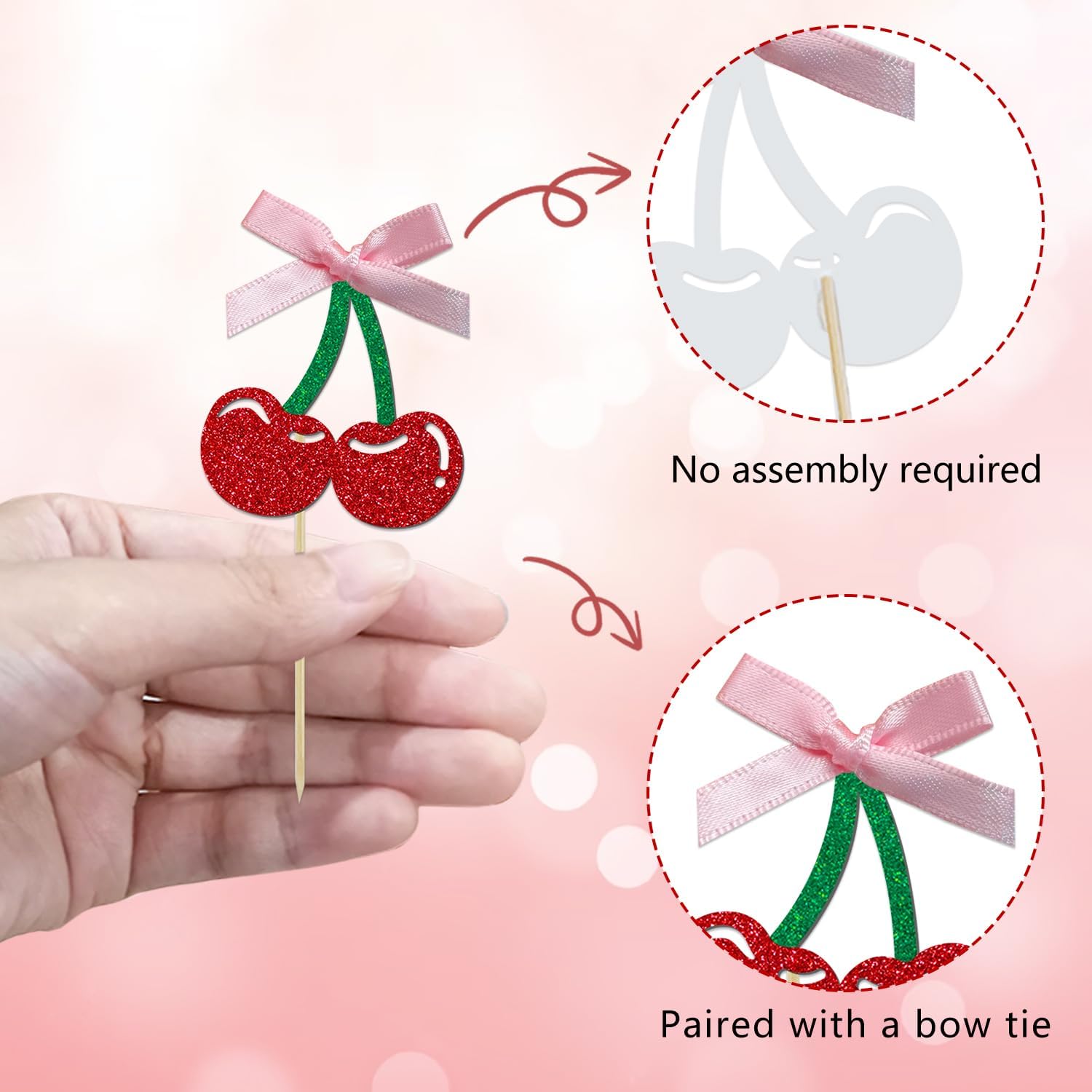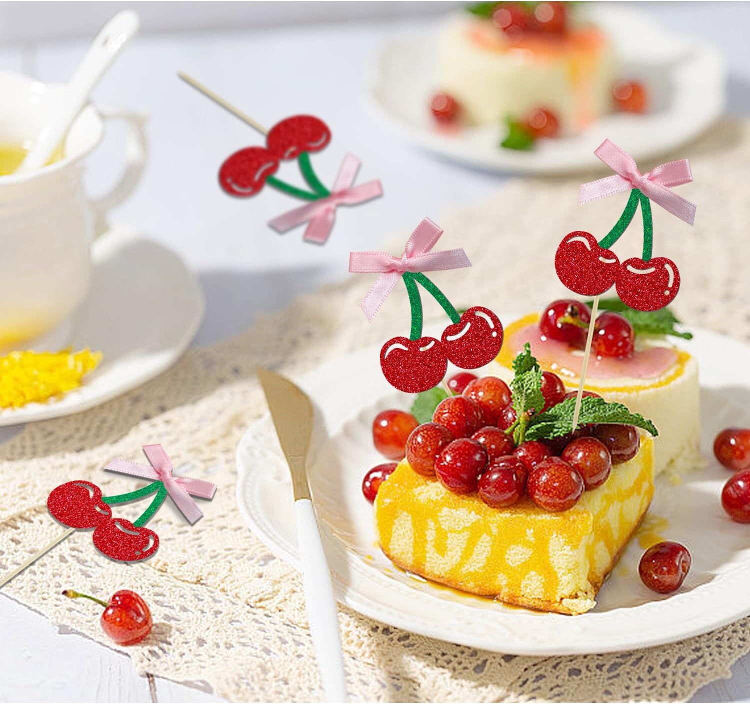 - 【Cherry Sweet】:These sparkling and cute cake decorations are excellent accessory for cherry or fruits party. The top features a unique cherry design, with cherries paired with satin bows that stand out and add extra radiance and cuteness. These cherry cake toppers will make your cake more attractive and everyone will love it! It's also a great photo prop to make your party more fun!