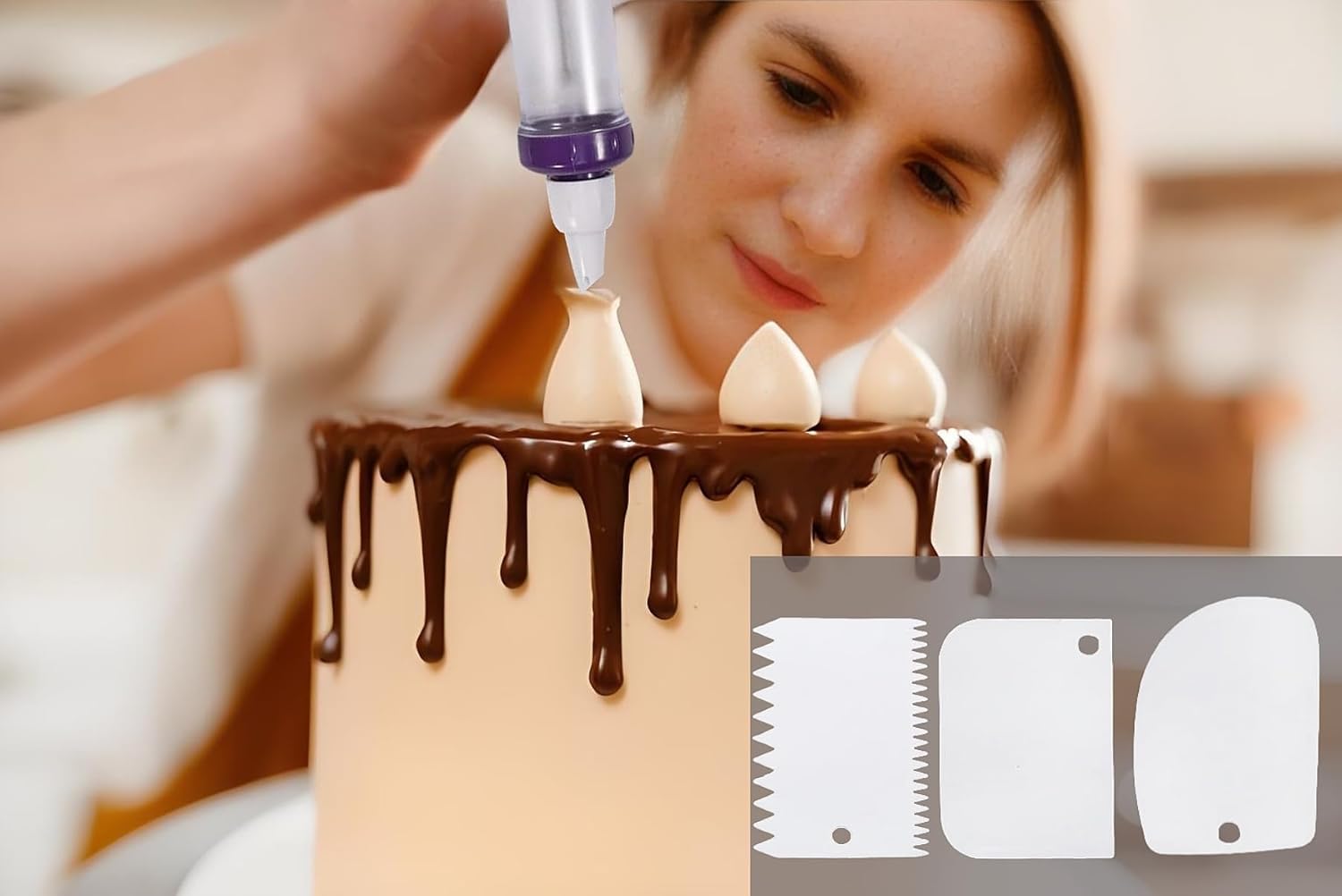 - Our cake icing decoration gun and cake scrapers are made of high quality ABS material, non-toxic, smooth
