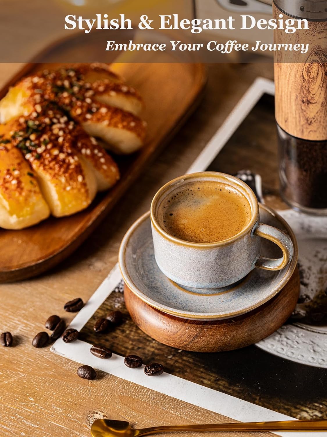 - PERFECT ESPRESSO COMPANION: Each espresso cup holds 2.5oz perfect for double shot espresso, cappuccino, macchiatos, latte, or Turkish coffee. The set includes 4 matching cups and saucers (cup dimensions: 1.77" H x 2.4" Dia.; saucer dimensions: 4.02" Dia.). Elegant gray glaze complements any table setting, from breakfast nooks to formal cafés. It is ideal for small-batch brewing or gifting to coffee enthusiasts.