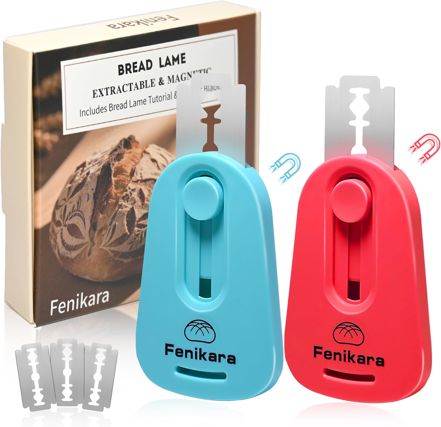 2PCS Upgraded Magnetic Sourdough Scoring Tool & Versatile Bread Scoring Tool- Professional Bread Lame for Sourdough Bread baking & Bread Making Tools - Scoring Patterns booklet & Razor Blades
