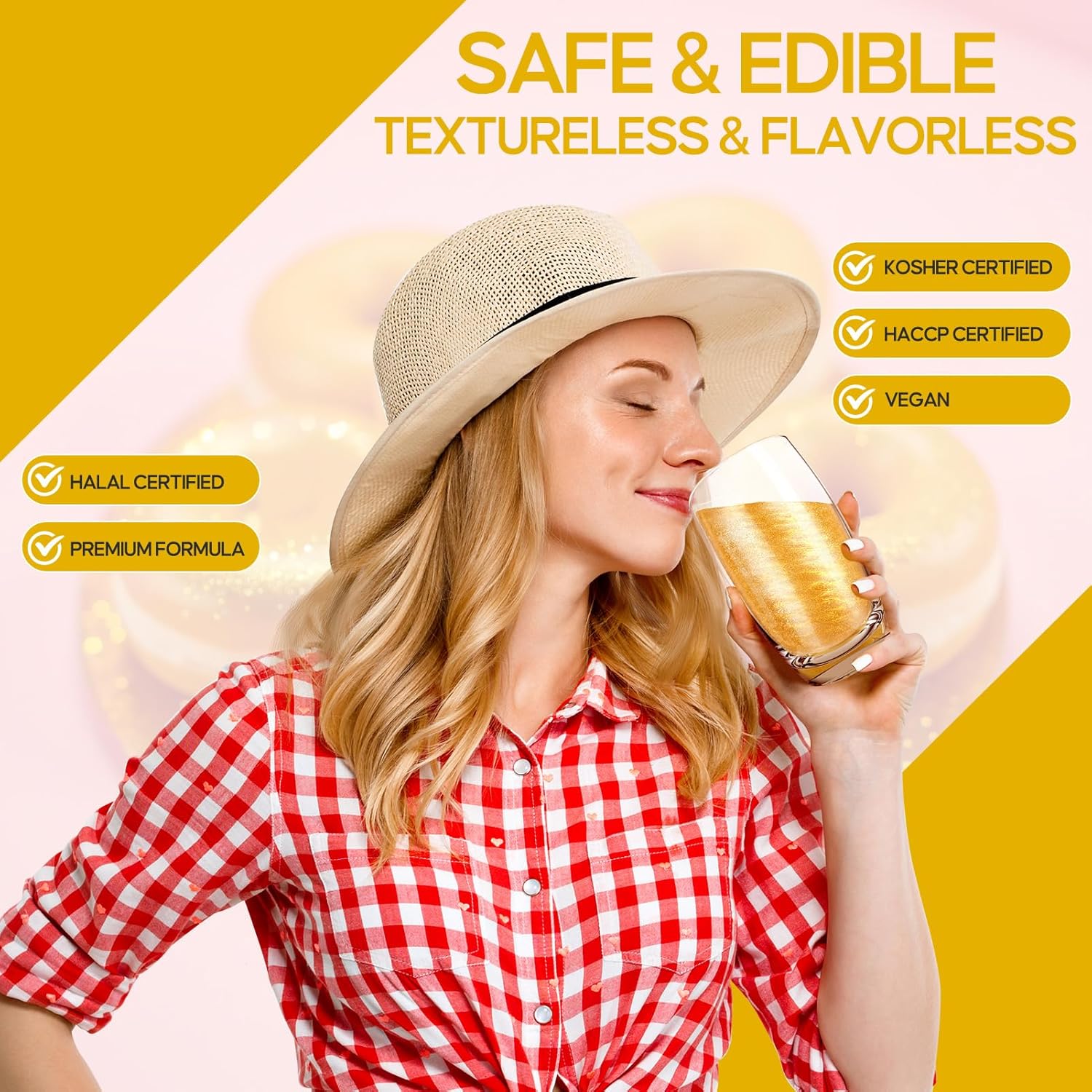 - Food-Safe & Allergen-Free Sparkle - Crafted with certified food-grade ingredients. Gluten-Free, Nut-Free, Dairy-Free & Vegan Friendly. Enjoy tasteless, odorless sparkle that won't alter your food or drink's flavor or texture. Decorate with confidence!