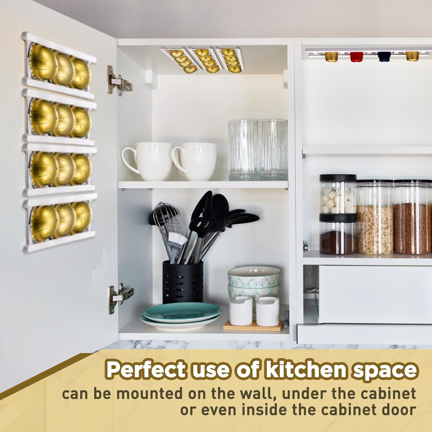 - Space Saving: this wall-mounted coffee holder can save space to the greatest extent; The holder consists of eight independent ladder parts and can be installed anywhere, such as on cabinet doors, walls or corner spaces