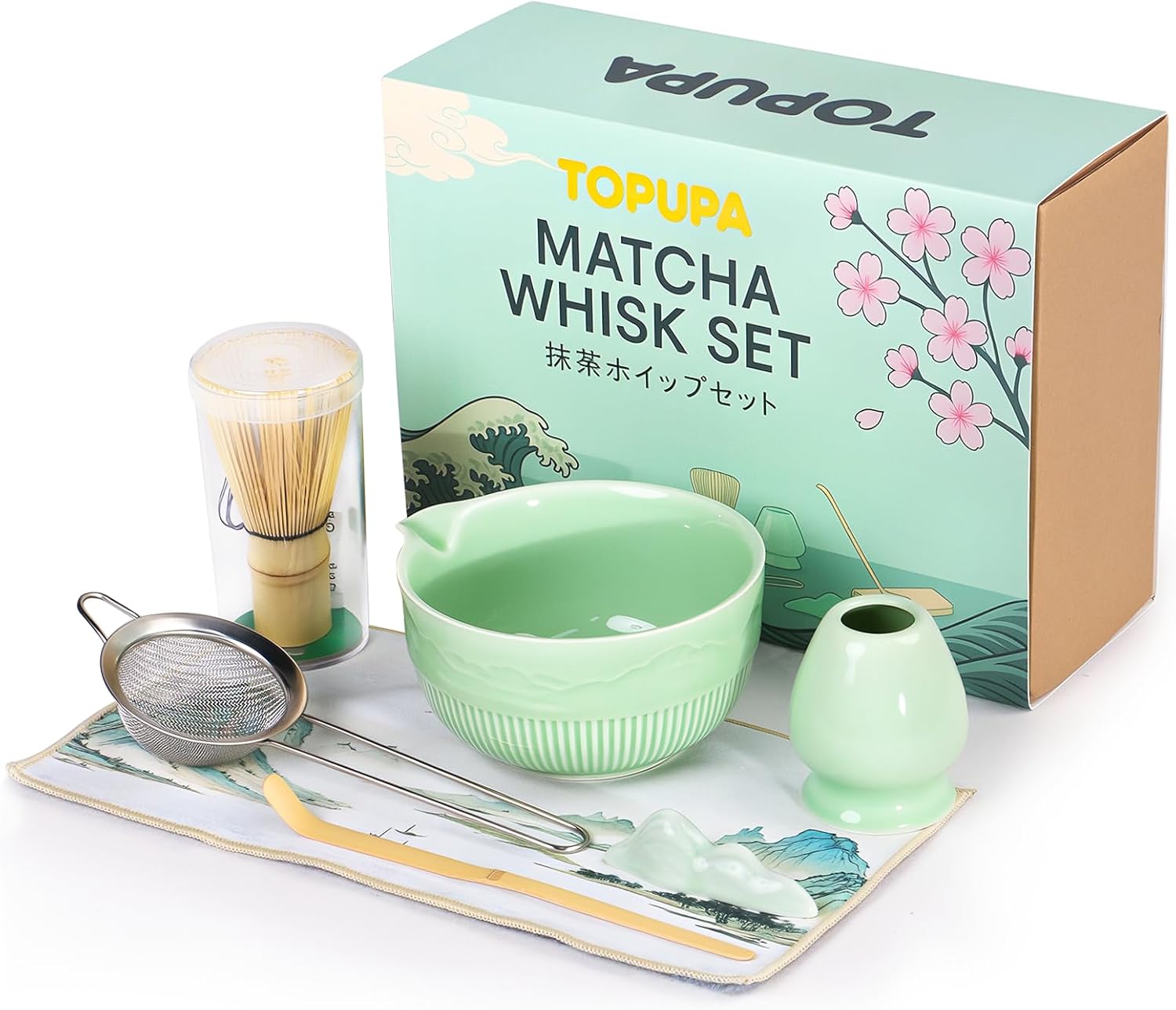- 【Complete 7-Piece Matcha Set】 Our all-inclusive kit has everything you need: 1*17oz Ceramic Bowl (chawan), 1*Bamboo Whisk (Chasen), 1Stainless Steel Sifter, 1Bamboo Scoop (chashaku), 1Whisk Holder, 1Ceramic Spoon Rest, 1Tea Cloth (chakin), and 1User Manual. Elegantly packaged for an authentic matcha experience. (Matcha powder not included).