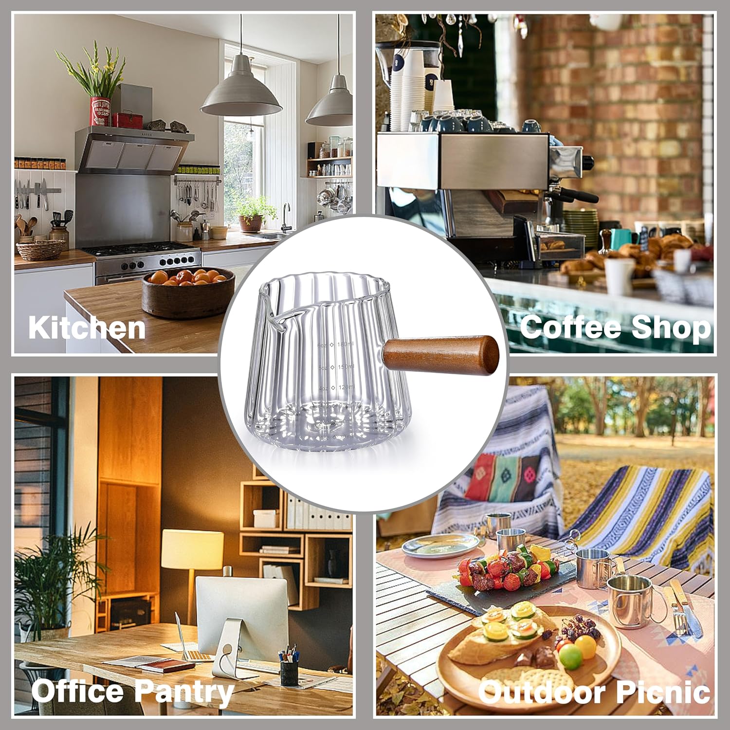 - 4. Ergonomic Wooden Handle:The natural wood handle of this espresso glass is not only aesthetically pleasing, but also practical—The espresso measuring cup stays cool to the touch even when the glass is hot. Ergonomically shaped for a secure grip, it adds both functionality and a premium, modern look to your kitchen, coffee bar and espresso accessories.