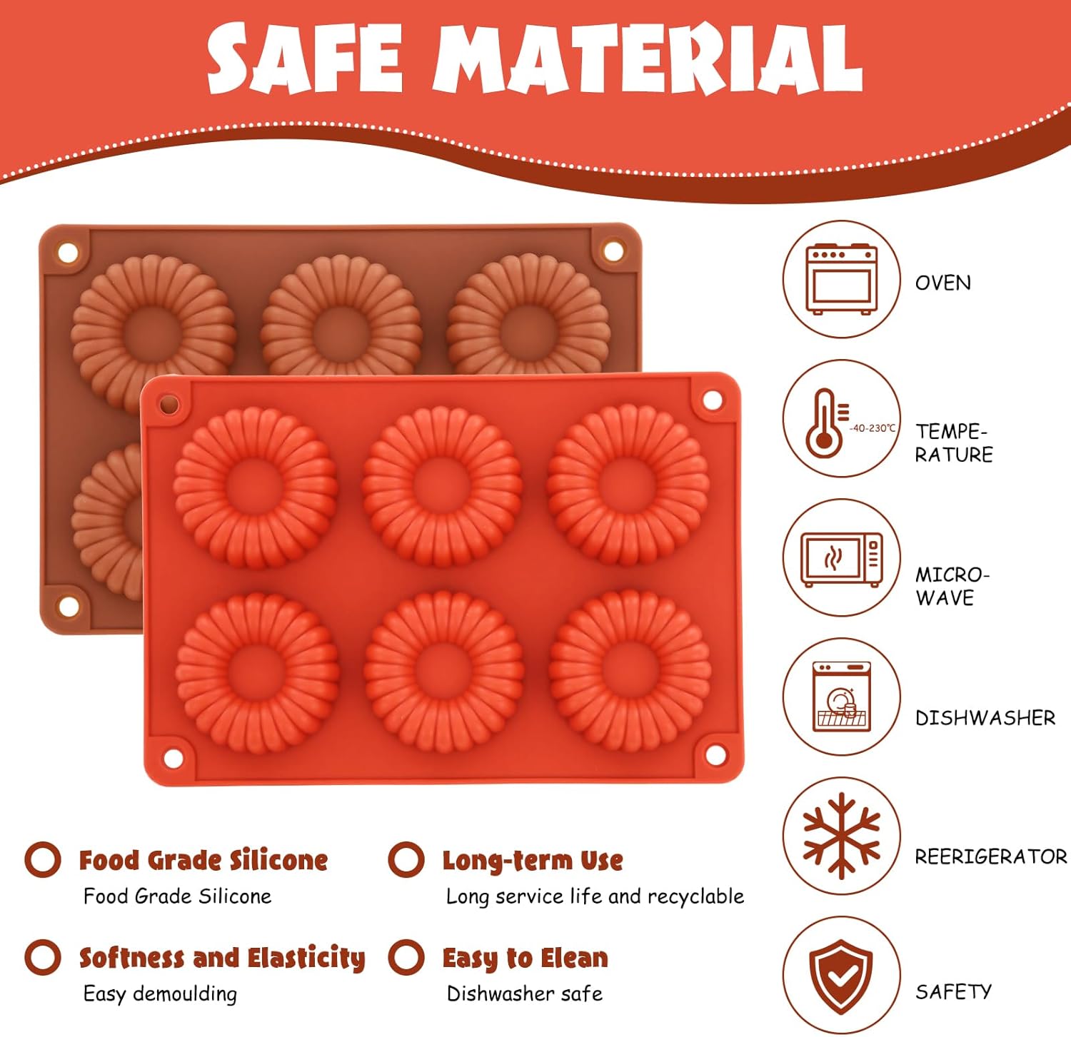 4 PCS Silicone Molds for Baking Non Stick Jello Molds with 6 Cavity Gelatin Mold for Baking Cupcakes Donuts Chocolate Muffins Brownies Jelly