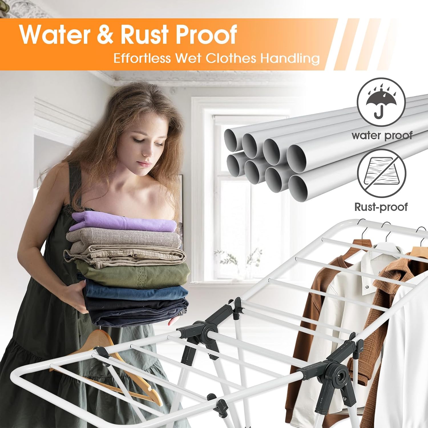 - Rust-Resistant Metal Frame for Long-Lasting Use: Constructed from high-quality steel with an anti-rust coating, this clothes rack for drying remains durable and reliable even in humid conditions, ensuring longevity and consistent performance. The rust-resistant feature of this drying rack makes it a smart investment for long-term laundry needs