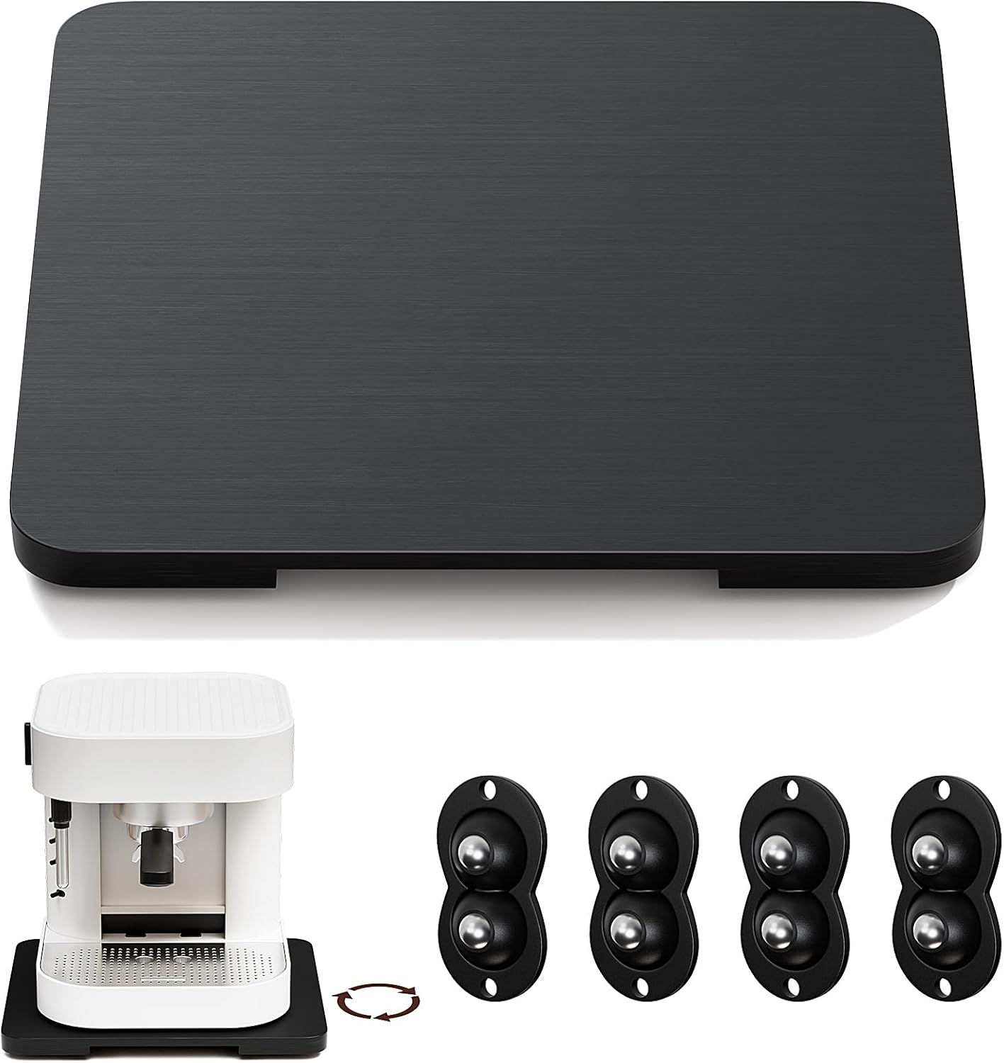 GuanQiao 360° Rotation Appliance Slider for Coffee Maker & Heavy Kitchen Appliance, Bamboo Rolling Tray for kitchen Counter, Sliding Tray with Premium Wheels (Black, 13.9"×11.6")