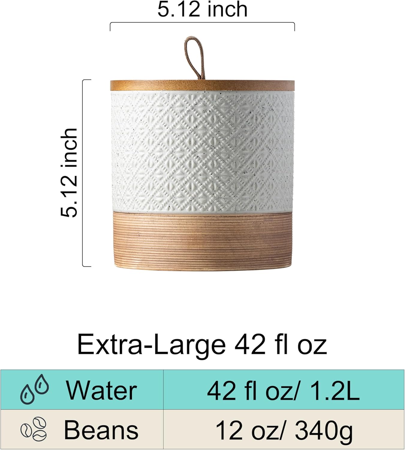 - Ultra-Airtight Wooden Lid: The wooden lid means business for freshness, with a tight gasket locking out air, moisture, and odors to keep beans crisp and grounds flavorful
