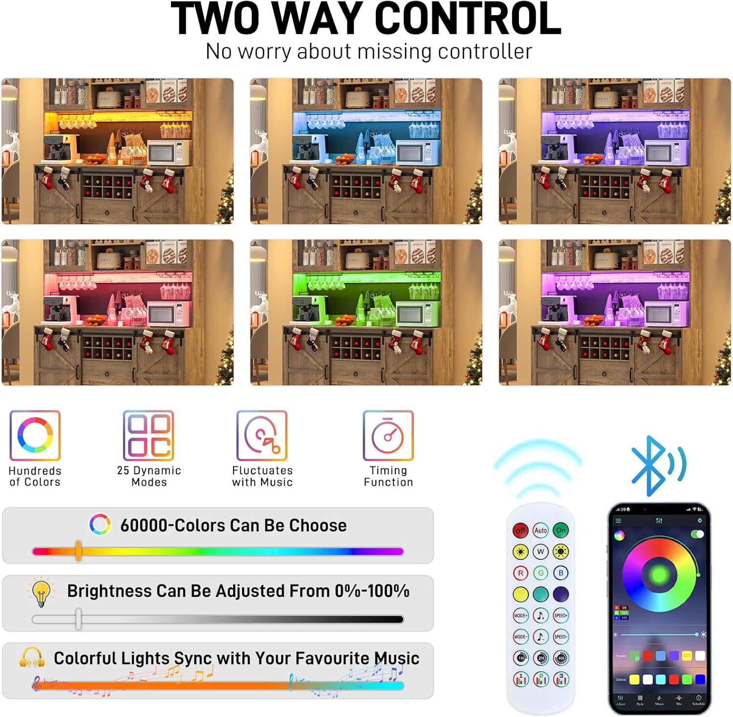 - ăGorgeous LED Party AmbianceăElevate your party with our large storage bar cabinet's LED lights. Control 6000 colors, 29 modes, and sync with music/mic via app or remote. Surprise your guests and create the ultimate party experience