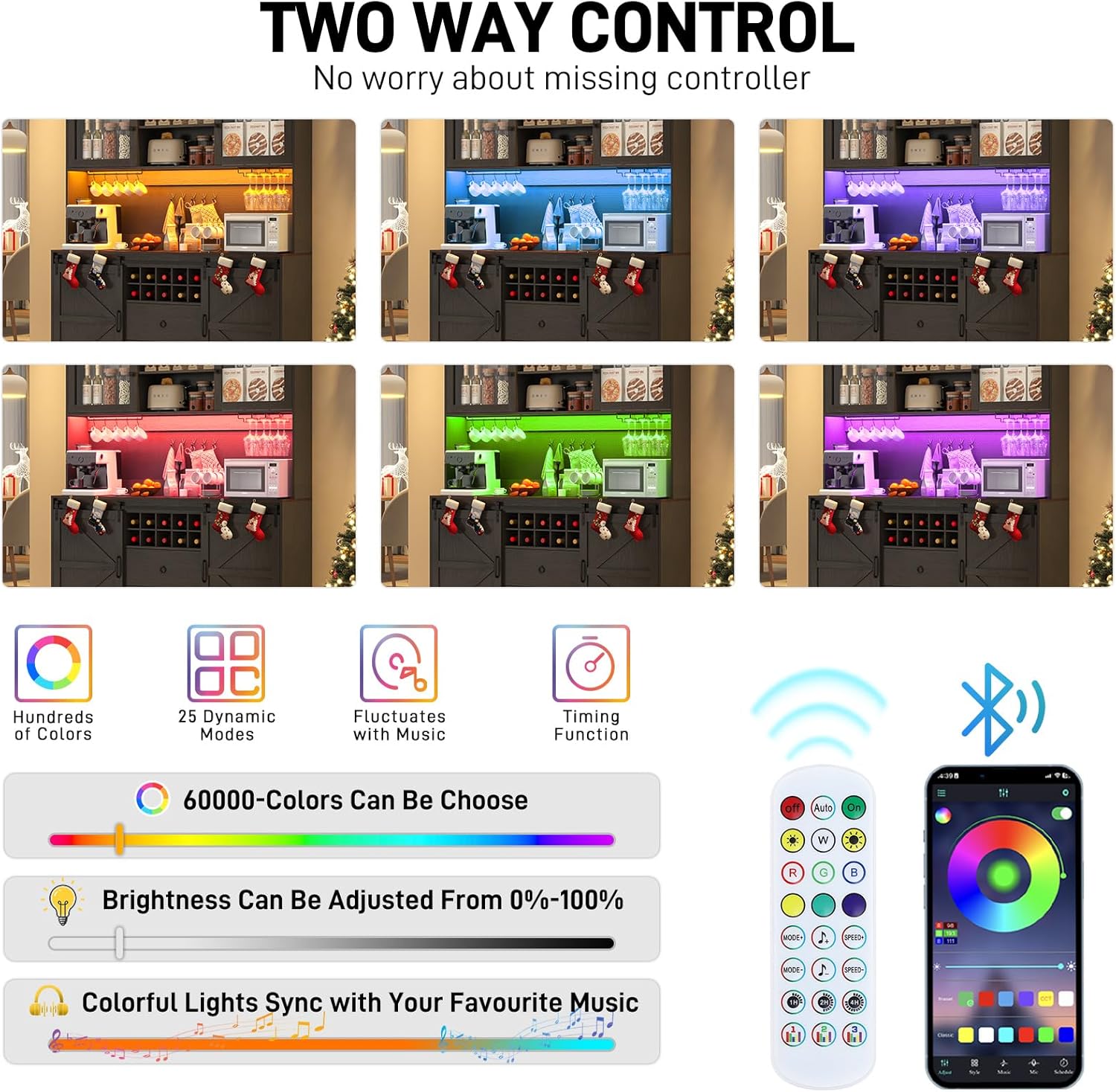 - ăGorgeous LED Party AmbianceăElevate your party with our large storage bar cabinet's LED lights. Control 6000 colors, 29 modes, and sync with music/mic via app or remote. Surprise your guests and create the ultimate party experience