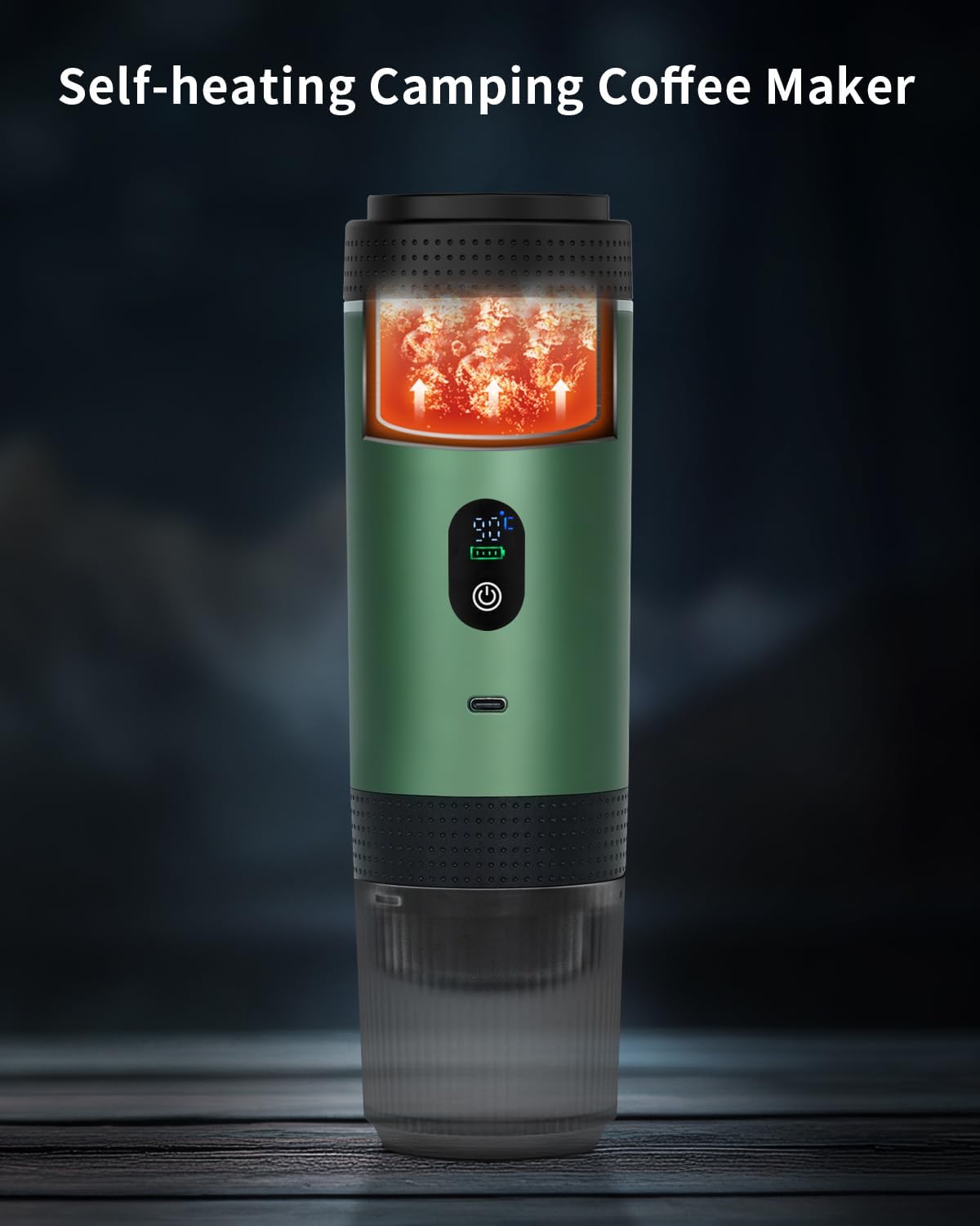 - Fast Self-Heating & Rich Crema: In just 3-5 minutes, the self-heating system heats 2.7oz of water from 76°F to 187°F, while the 20-bar pressure ensures smooth espresso extraction with a rich, velvety crema. Get professional-quality results in no time! 20 Bar Mini Small 5V Car Coffee Maker for Travel Camping