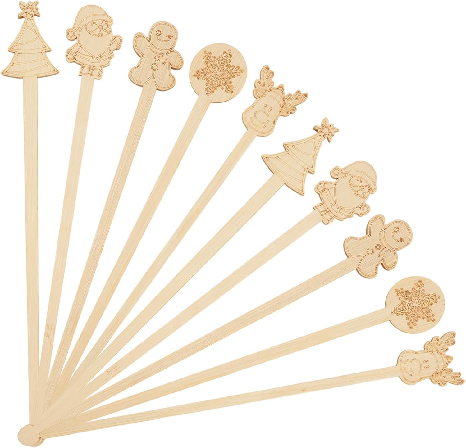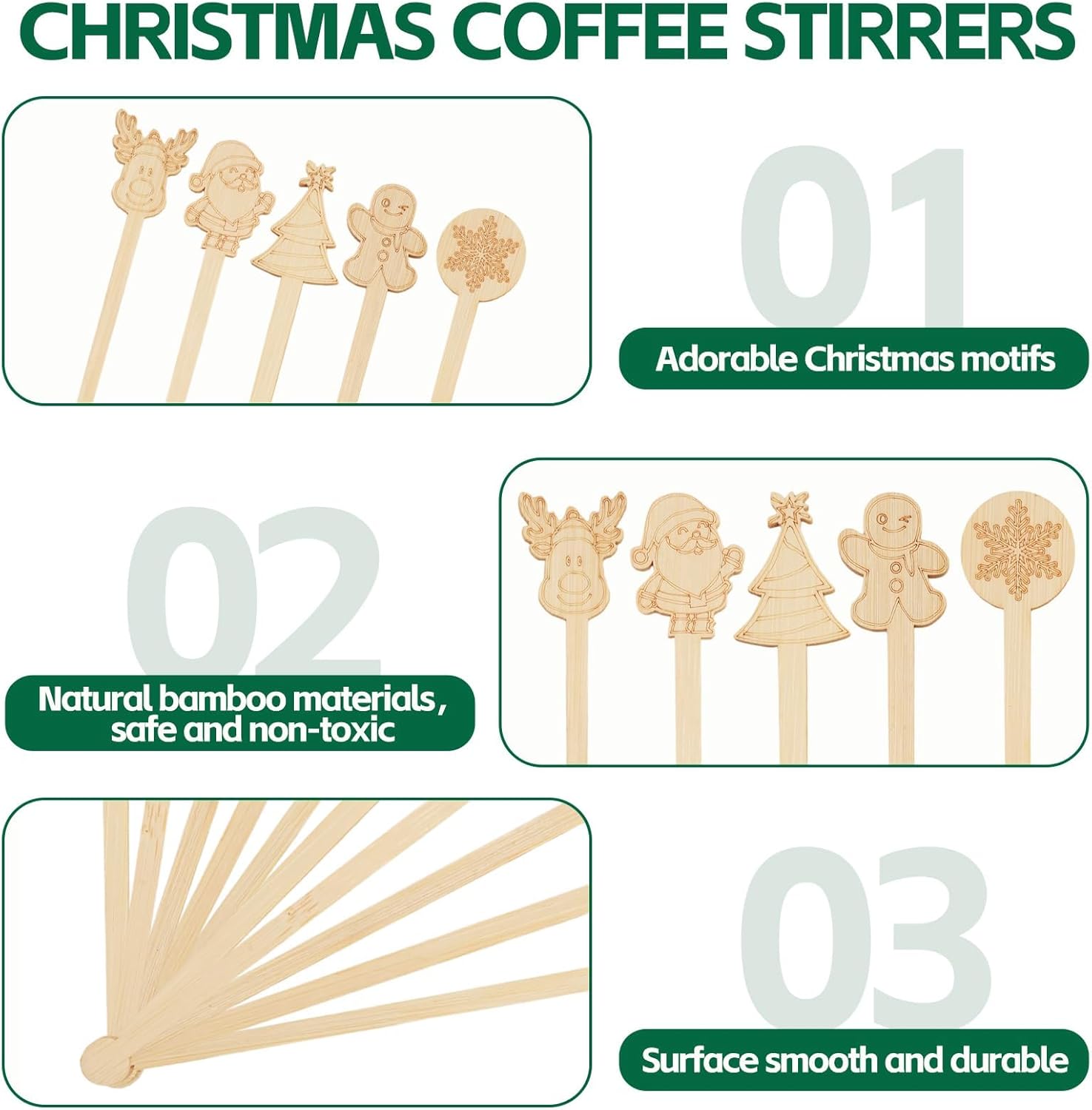 - 【Safe & Reliable Material】: Christmas Bamboo Coffee Sticks are made of bamboo, odorless and safe to use, stronger than traditional wooden coffee stirrers, no burrs or sawdust ensures a clean stirring experience, not easy to bend and are biodegradable for long term use.In a season where festivities and celebrations are abundant, these wooden stirrers assure reliability in your daily use, giving you peace of mind.