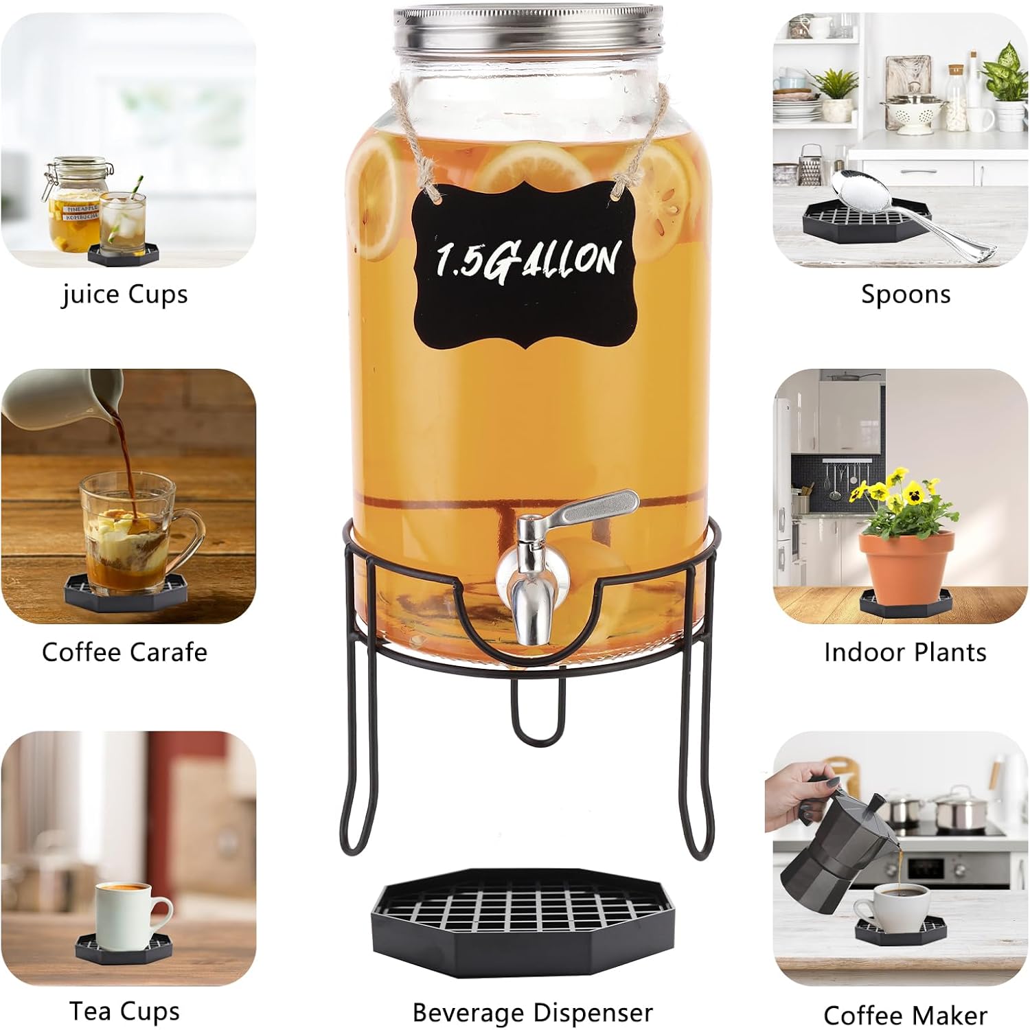 - Spill Protection: 5.3"L x 5.3"W x 0.8"H.5.3" trays catch drips from coffee/tea/wine dispensers/Drink Dispenser; prevent slips and stains for safer bars, kitchens & homes.