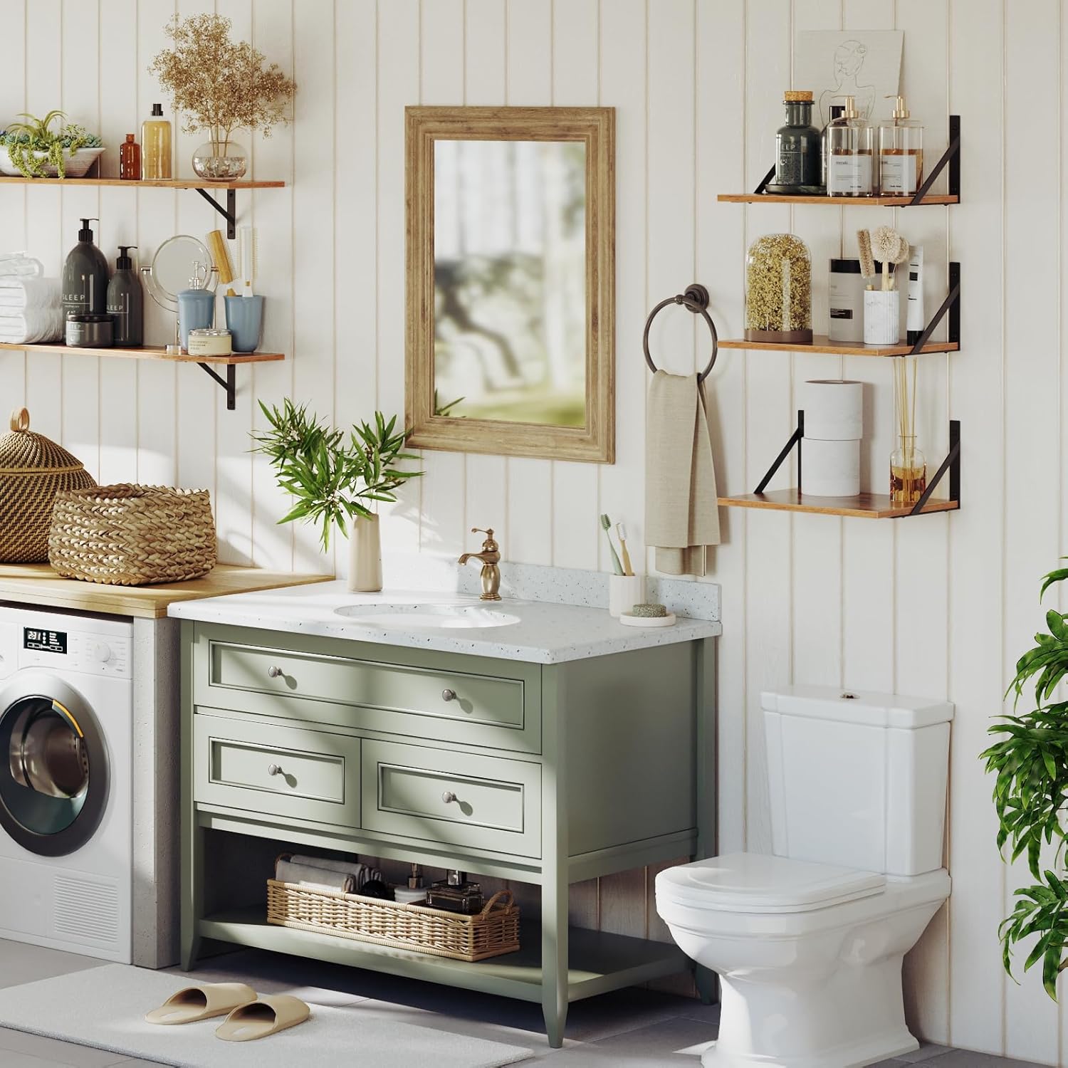 - ăSturdy & DurableăCrafted from high-grade particleboard and metal brackets, the hanging shelves are built to last. The sturdy construction guarantees durability, withstanding the weight (up to 22lbs) over time. They are not only strong but also resistant to wear and tear, maintaining its sleek appearance for years to come