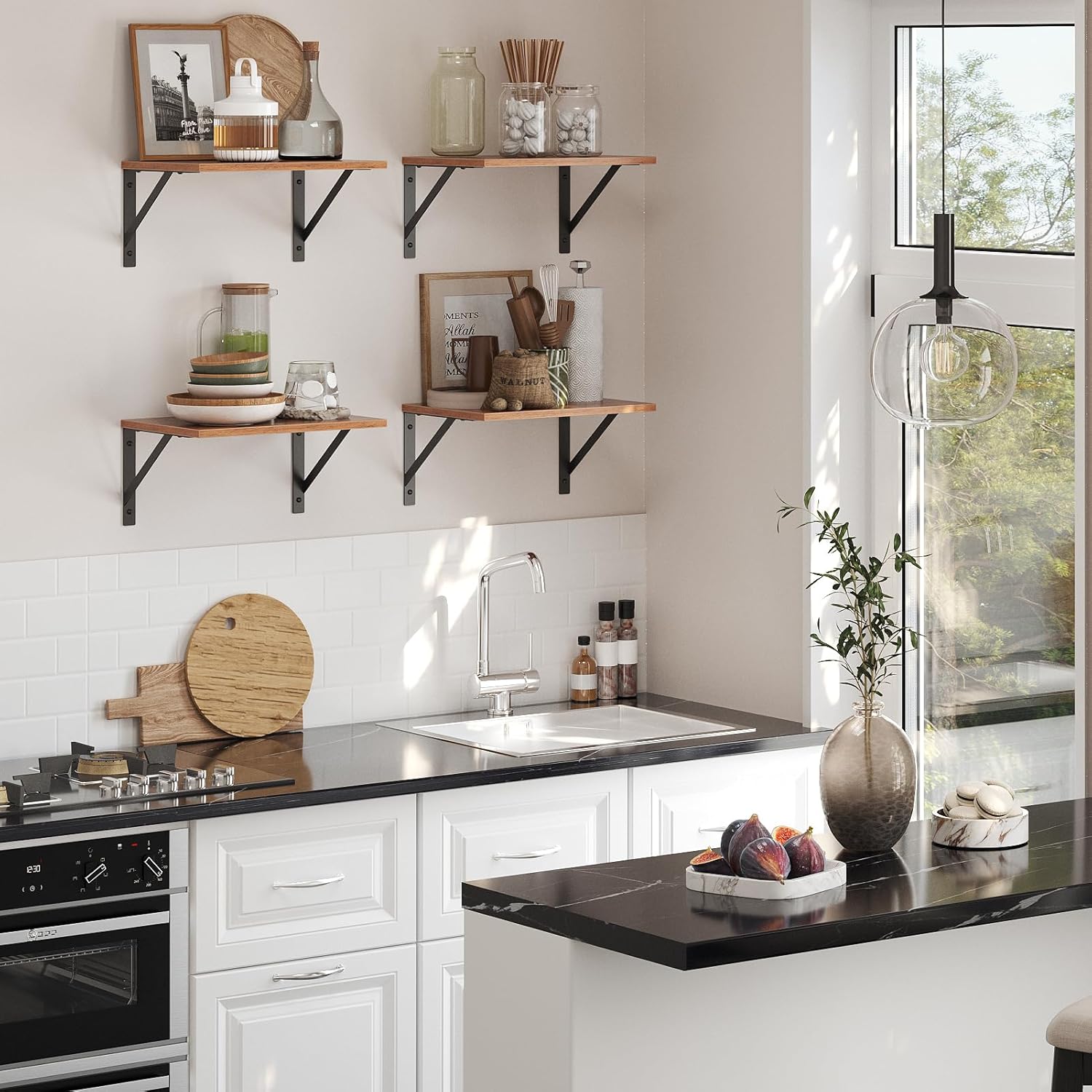 - ăVersatile in Any RoomăMetal brackets can be installed on the top or bottom of the shelf. Use it as a bookshelf in the study, a floating nightstand in the bedroom, a display shelf for family photos and legos in the living room, a bathroom shelves for toiletries. Upgrade your kitchen and laundry with these ledges