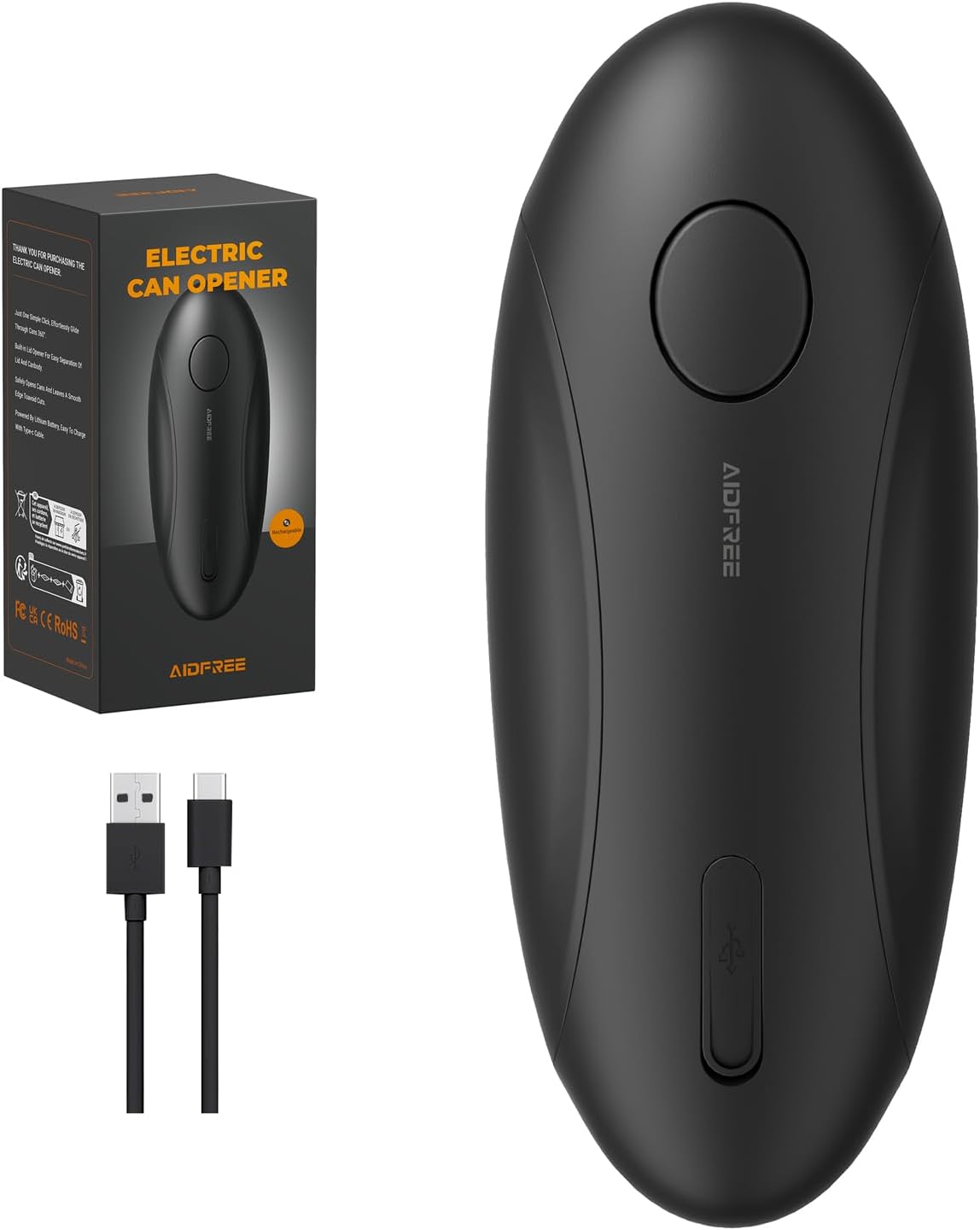 - USB-C Charging & Portable Design:Rechargeable via USB-C,cable included—no batteries needed;a single charge 2hours opens 50 cans; compact, cordless, and lightweight-429g;it stores anywhere -drawers, bags and travels everywhere-kitchen, camping, RVs