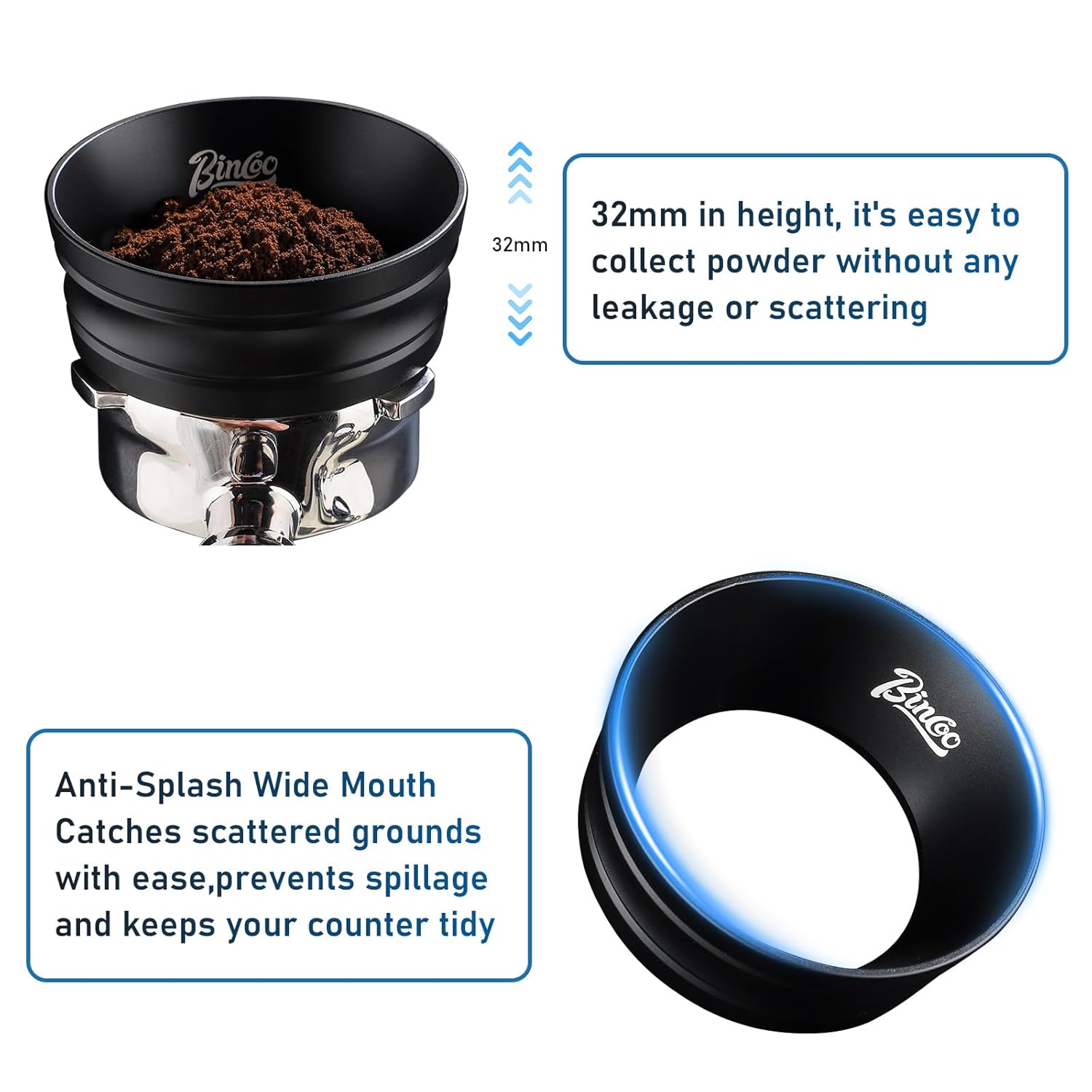 Bincoo Espresso Dosing Funnel 58mm,More Tall Magnetic Aluminum Alloy Portafilter Funnel Ring for Zero Mess Portafilter, Anti-Splash Wide Mouth Coffee Grounds Dosing Tool for Espresso Machine(Black)