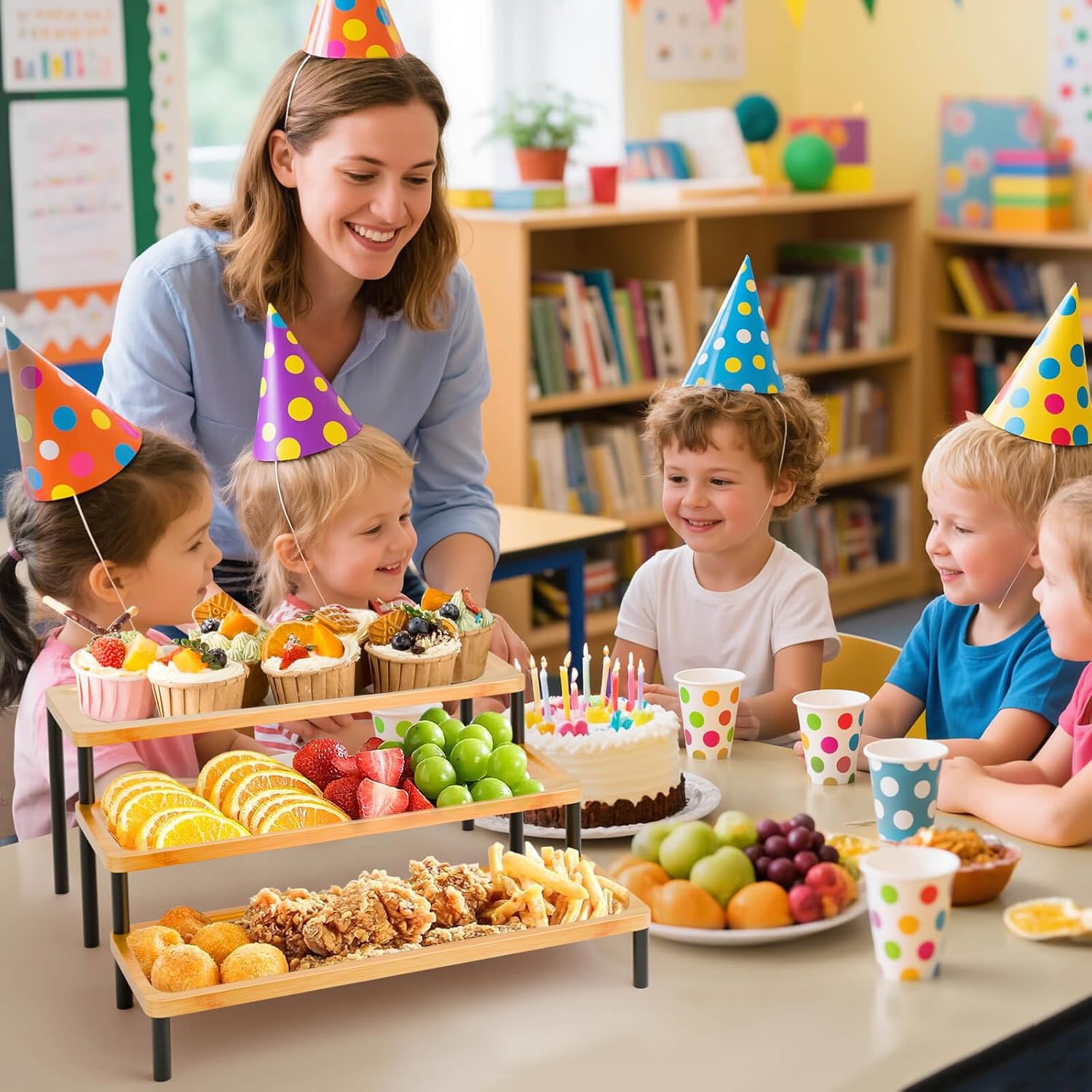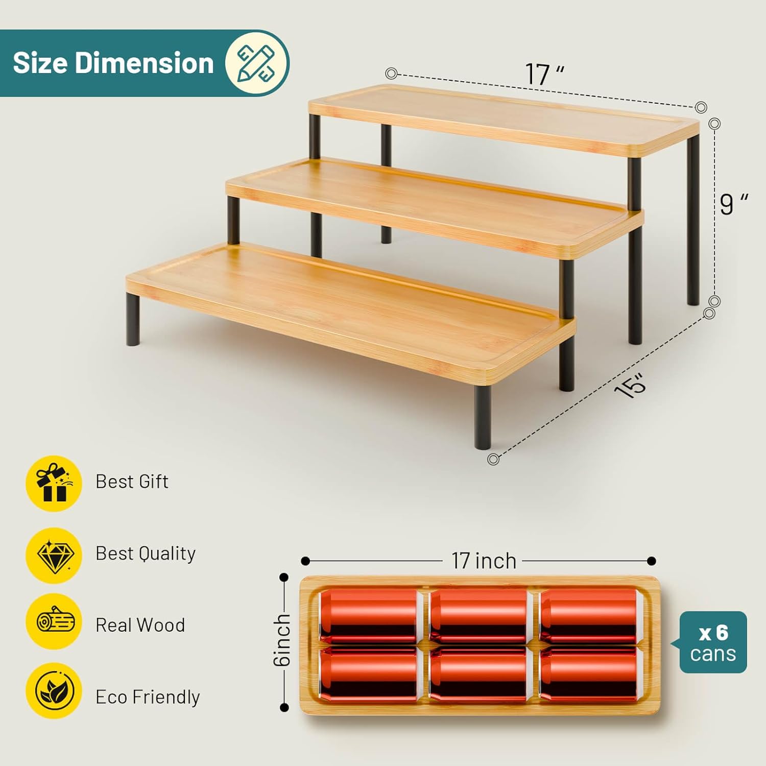 - 【Sturdy & Thick Trays】The layered serving platter is crafted from sturdy and safe material. Each plate features raised edges to prevent items from slipping off. Compared with foldable and spindly stand in market, our serving tray stand is made of high-quality stout bamboo with thickened Legs to avoid wobble.