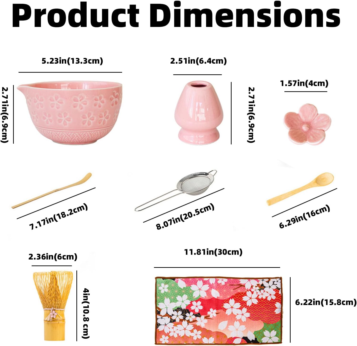 - 8 PCS Beginner-Friendly Kit: The matcha kit includes everything needed to make the perfect matcha, 1*matcha bowl with spout, 1*matcha whisk, 1*whisk holder, 1*matcha scoop and 1*scoop stand, 1*matcha sifter stainless steel, 1*tea towel,1*bamboo spoon