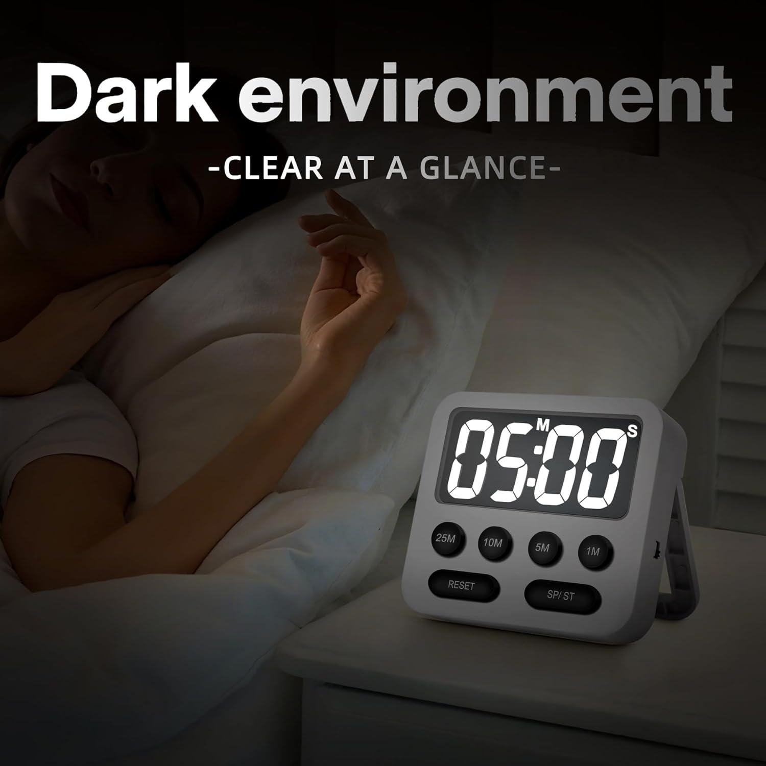 Pomodoro Timer, Digital Productivity Timer with Large Display, Kitchen Timers for Cooking, Settings 1-5-10-25 Minutes, White