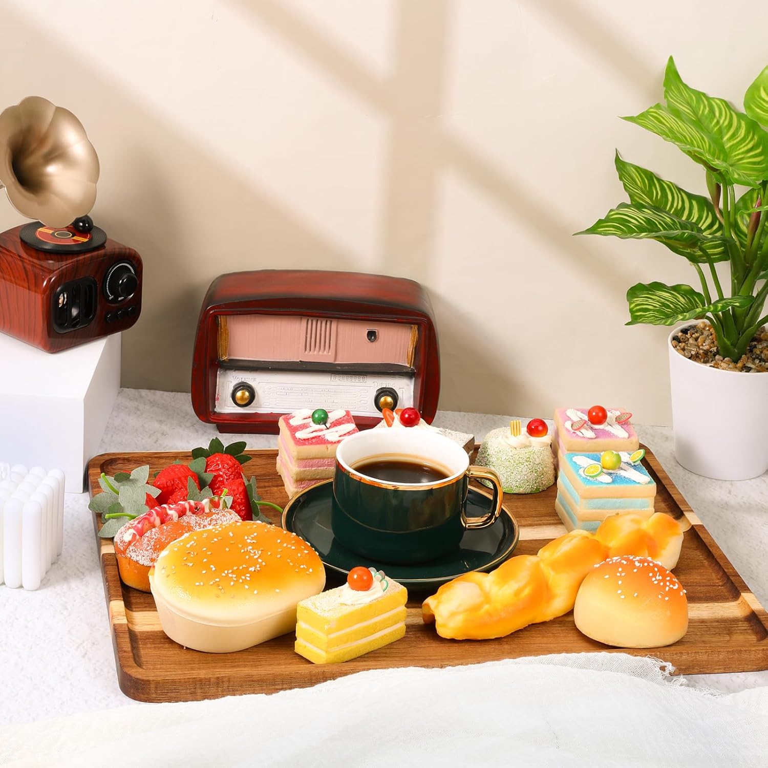 2 PCS 16 x 12 in Large Solid Acacia Rectangular Wood Serving Trays Natural Wooden Boards Serving Platters for Bar Coffee Party Dessert Tray
