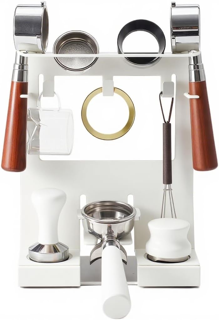 - 【All-in-One Espresso Organizer】Designed for baristas and home coffee lovers, this 2-tier rack keeps your espresso accessories neatly organized. Fits 51-54mm portafilter, tamper, distributor, dosing ring, and more — everything in one place, easy to access.