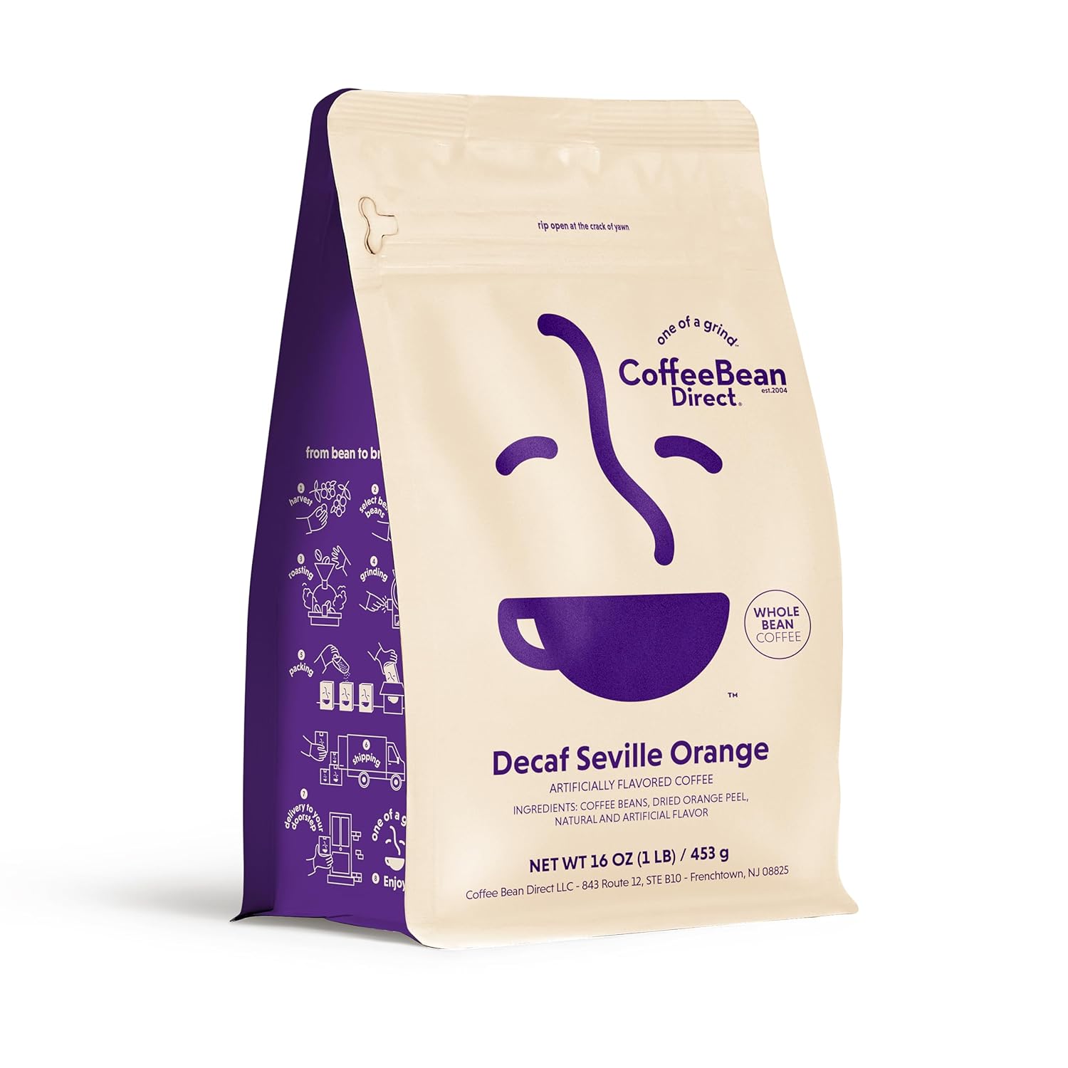 Coffee Bean Direct Decaf Seville Orange Flavored, Whole Bean Coffee, 1 Pound Bag