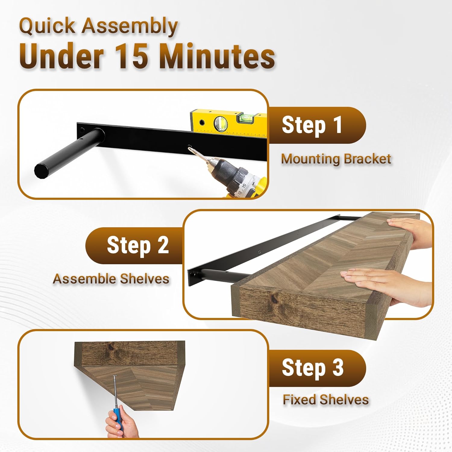 - ✅[𝐏𝐫𝐞𝐦𝐢𝐮𝐦 𝟏.𝟓" 𝐀𝐜𝐚𝐜𝐢𝐚 𝐖𝐨𝐨𝐝]: Made from 100% acacia wood with a striking chevron finish, these shelves boast exceptional durability and timeless design to complement any decor.
