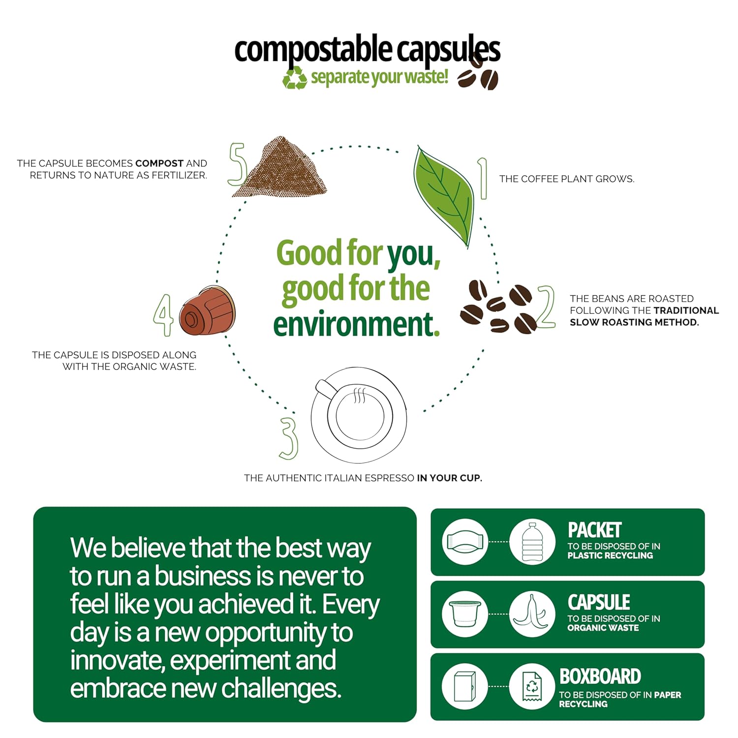 - Intenso – Strong & Full-Bodied – With an intensity of 8/10, Intenso blends Arabica and Robusta for a powerful espresso cup. Enjoy tasting notes of licorice, cocoa & caramel, combining bold Italian richness with smooth, aromatic complexity for a cafe-style experience.