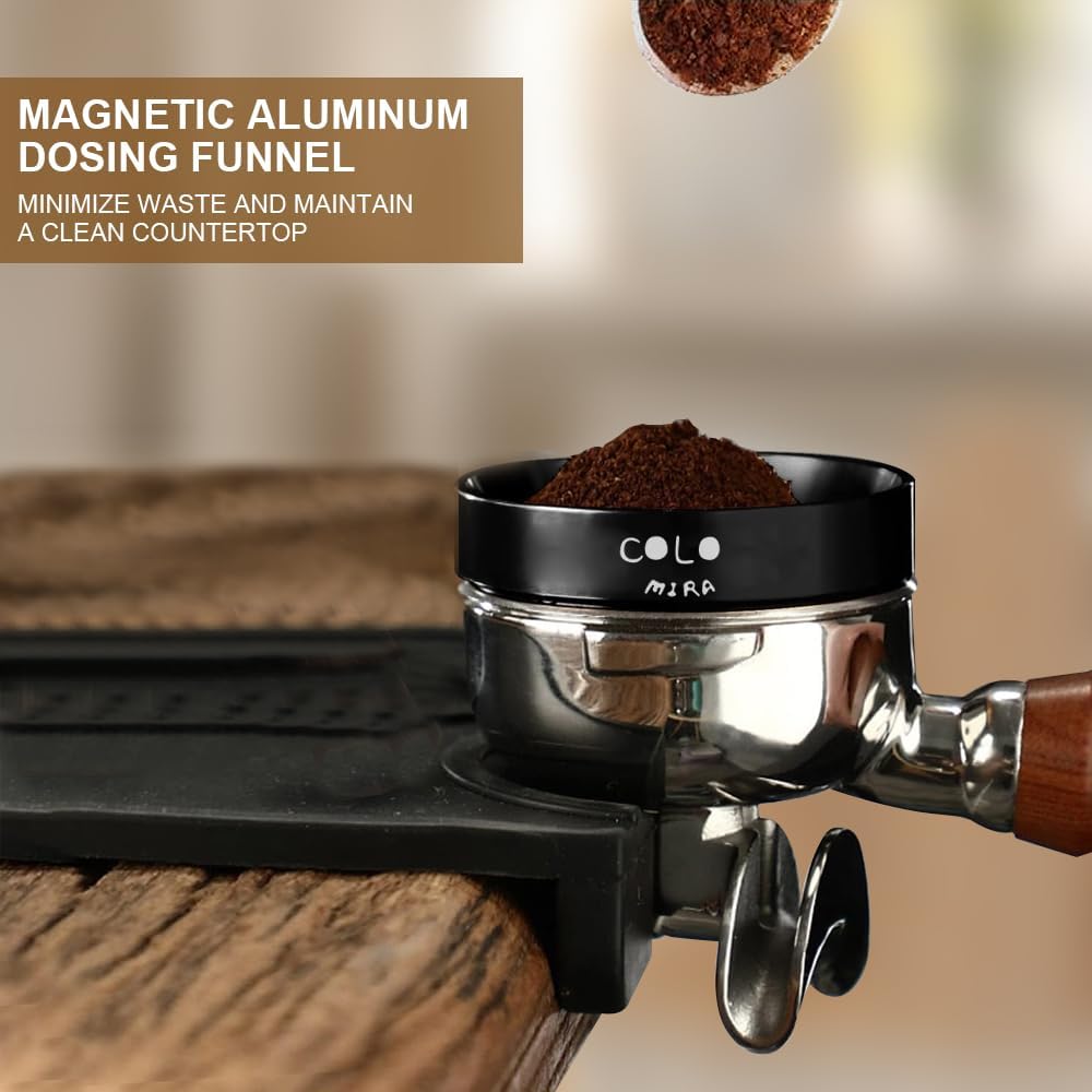 - Magnetic Dosage Ring: With evenly distributed magnets at the base of the espresso dosage funnel, providing a strong adhesive force. Allows quick and instant locking onto your portafilter, ensuring a simple and reliable coffee process.