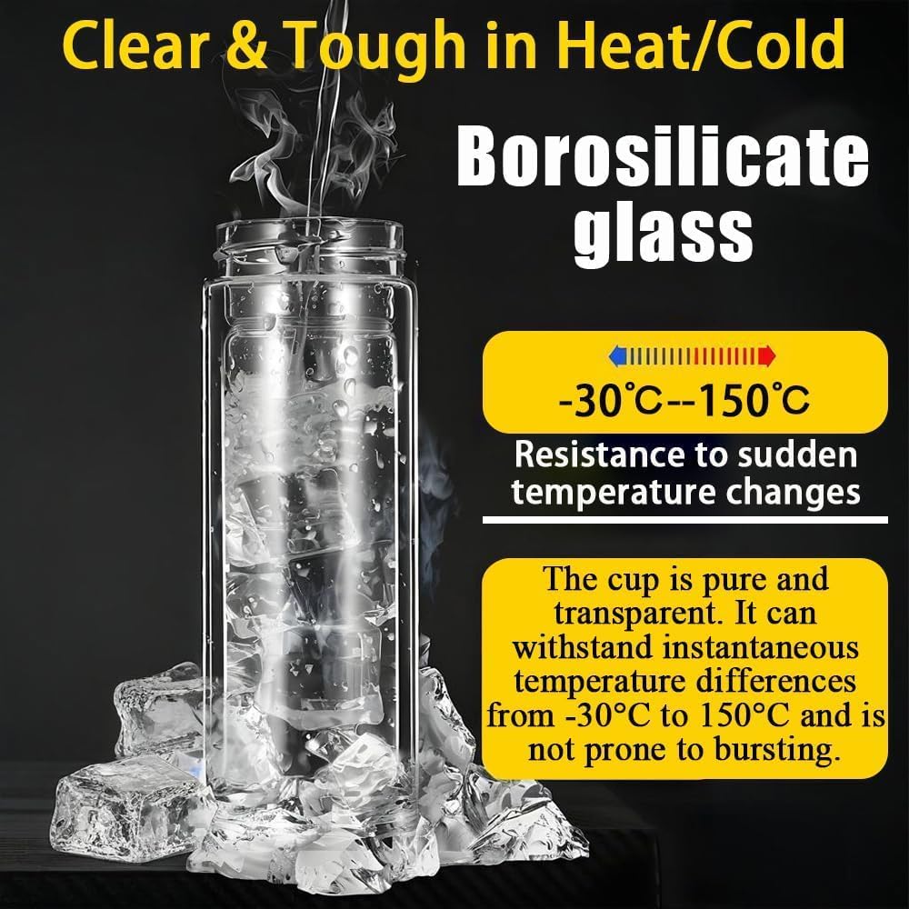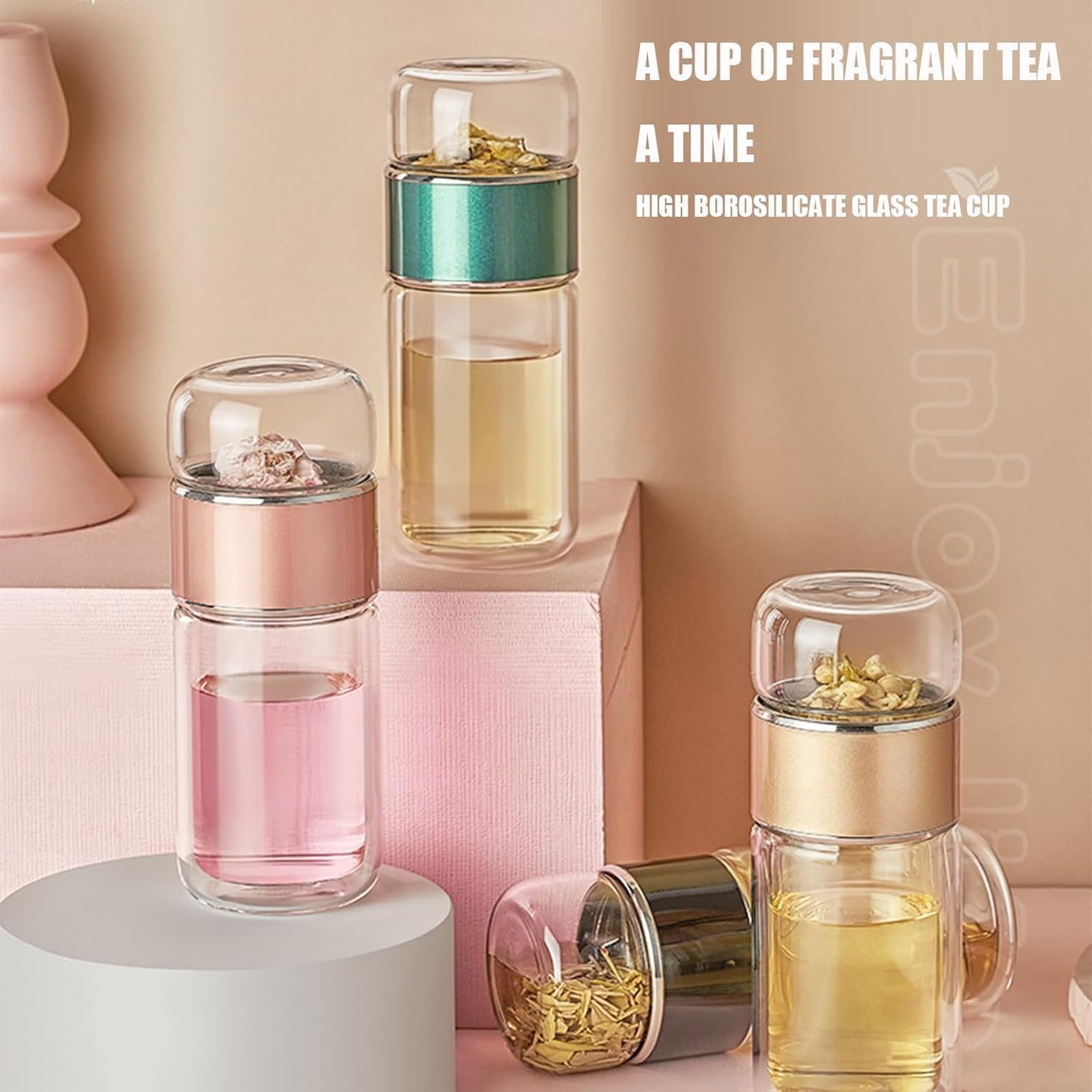 - 3-in-1 Versatility: This tea infuser bottle as a tea infuser, a fruit infuser, or remove the filter to turn it into your everyday water bottleâmeeting multiple drink needs in one stylish design; Enjoy a Burn-Free Experience with the Double-Walled Glass Insulation That Keeps the Exterior Cool to the Touch.