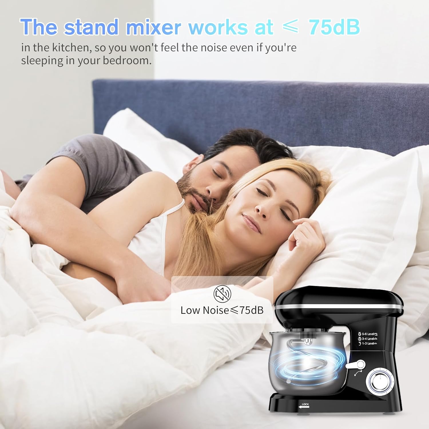 - 400W Motor with 6 Speeds for All Tasks: From slow stirring (pancake batter, sauces) to high-speed whisking (meringues, whipped cream) and heavy-duty dough kneading (artisan bread, pizza dough), this mixer adapts to every baking need, reducing manual effort significantly.