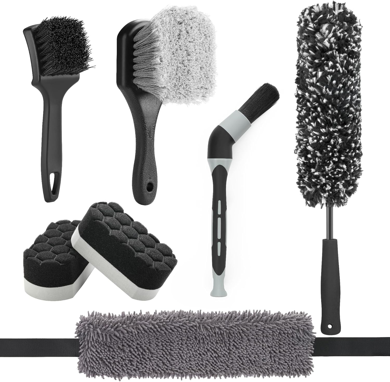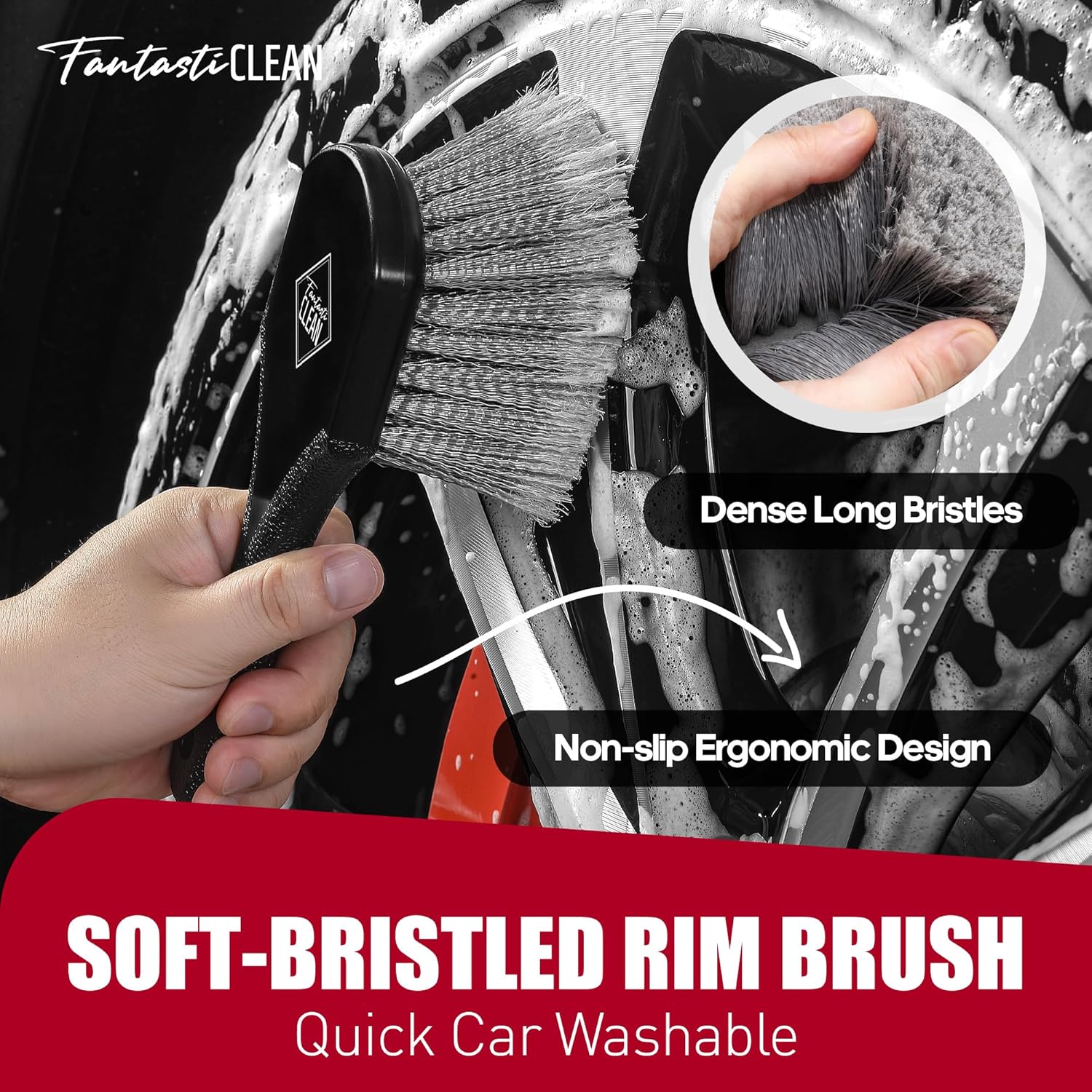 Fantasticlean 7PCS Car Wheel Brush Kit, Tire Brush, Soft-bristled Rim Brush, Scratch-Free Chenille Tape, Microfiber Bendable Brush, Curved Detailing Brush with Elbow Connector, Detailing Pads