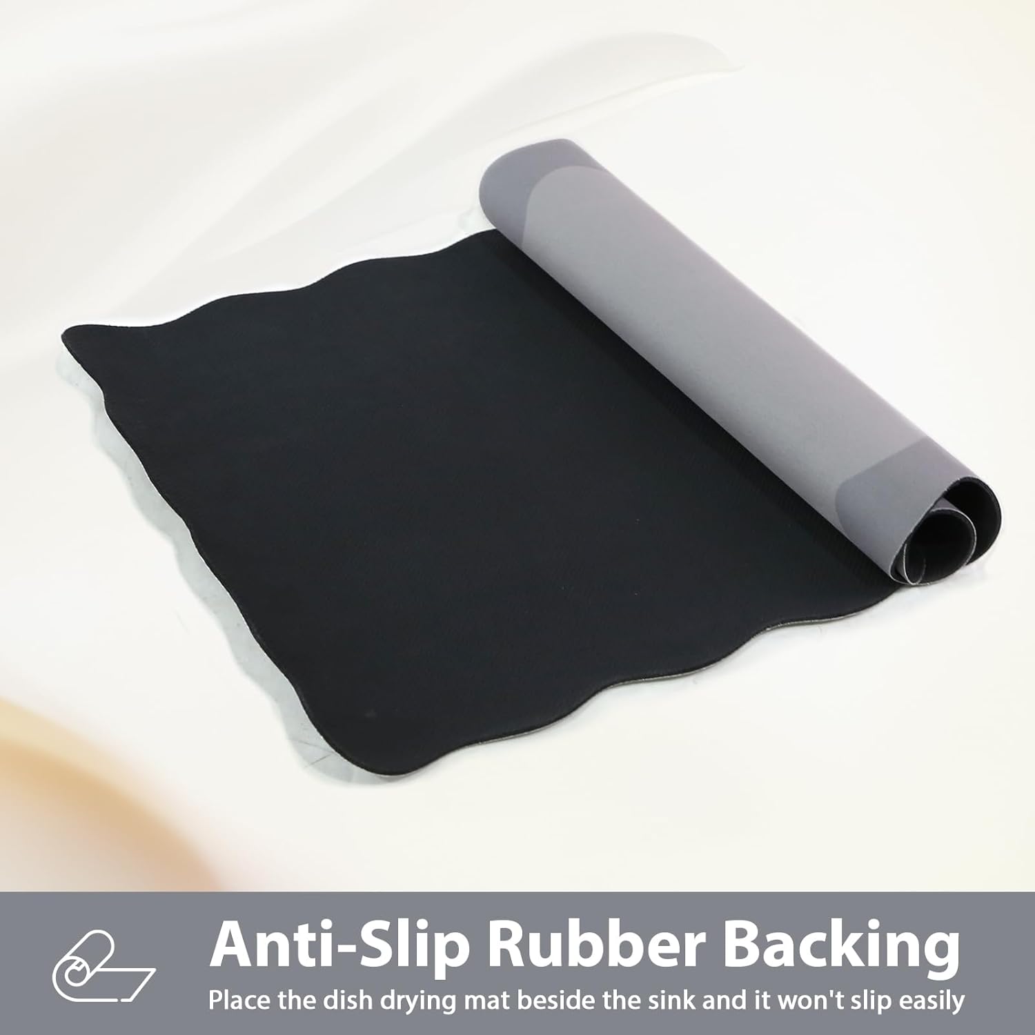 - Scalloped & Cute Design: Pleae clean it according to our instruction in picture before using our scalloped dish drying mat. Please refer to the size chart to see the size. Our scalloped cute dish drying mat gives the best expression to the aesthetics. It can not only be used as a coffee mat, but also as a door mat, placemat, mouse pad, pet mat and even can be as a decoration for the kitchen and home, adding bright colors to your home