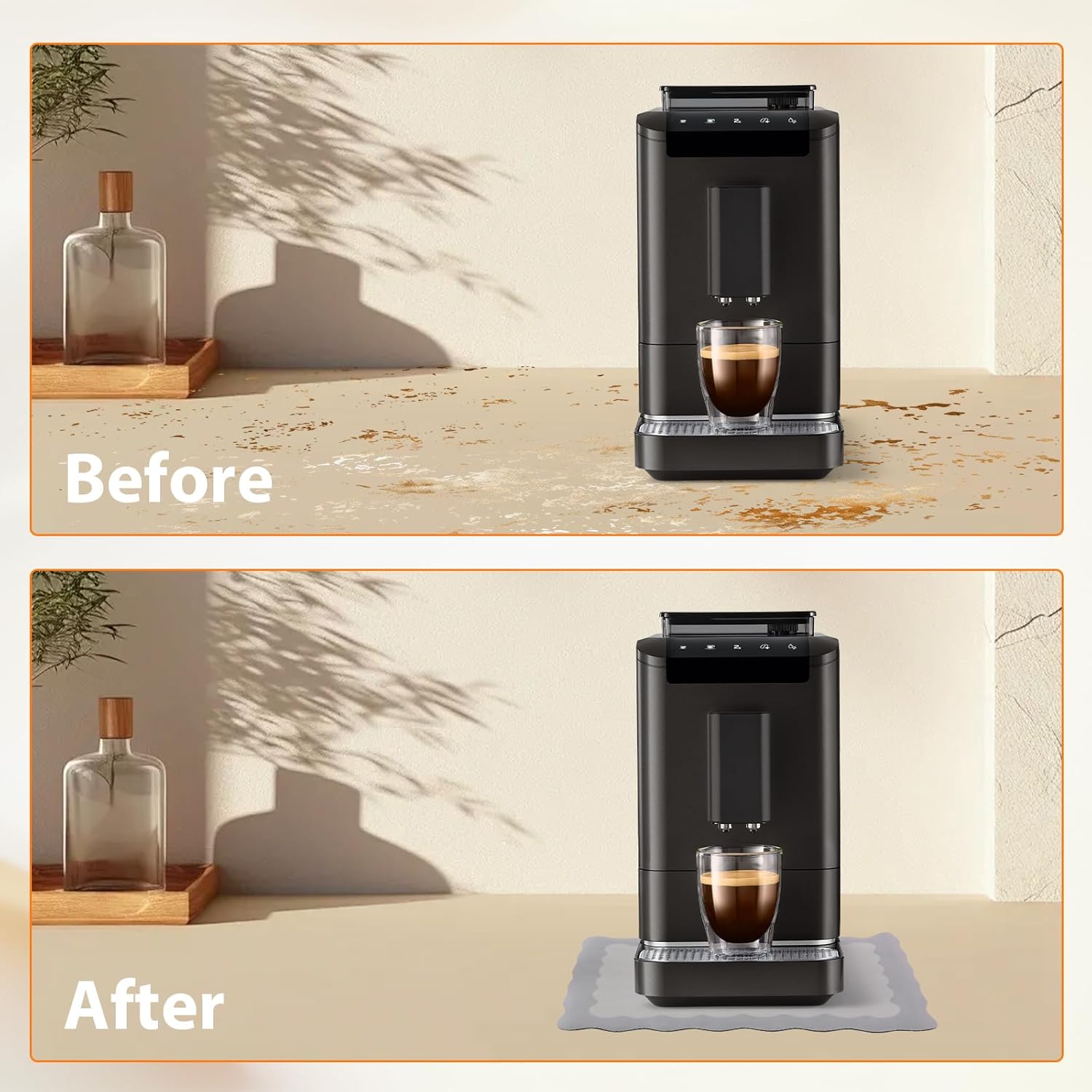 - Two Sizes: There are two sizes of coffee bar mat for your kitchen. 12"x 19" and 16"x24" suited for your kitchen counter, dish racks, coffee station and dining table and bathroom well