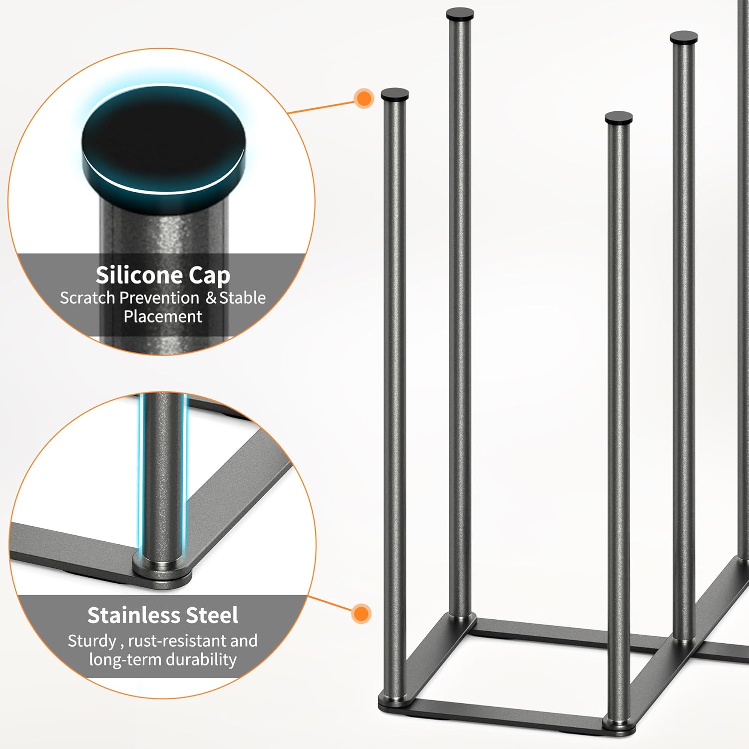 - ăScratch-Resistant Protectionă Featuring seven silicone caps on top of the stainless steel poles, this drying rack securely holds bottles, cups, jars, and other kitchen items while preventing scratches.